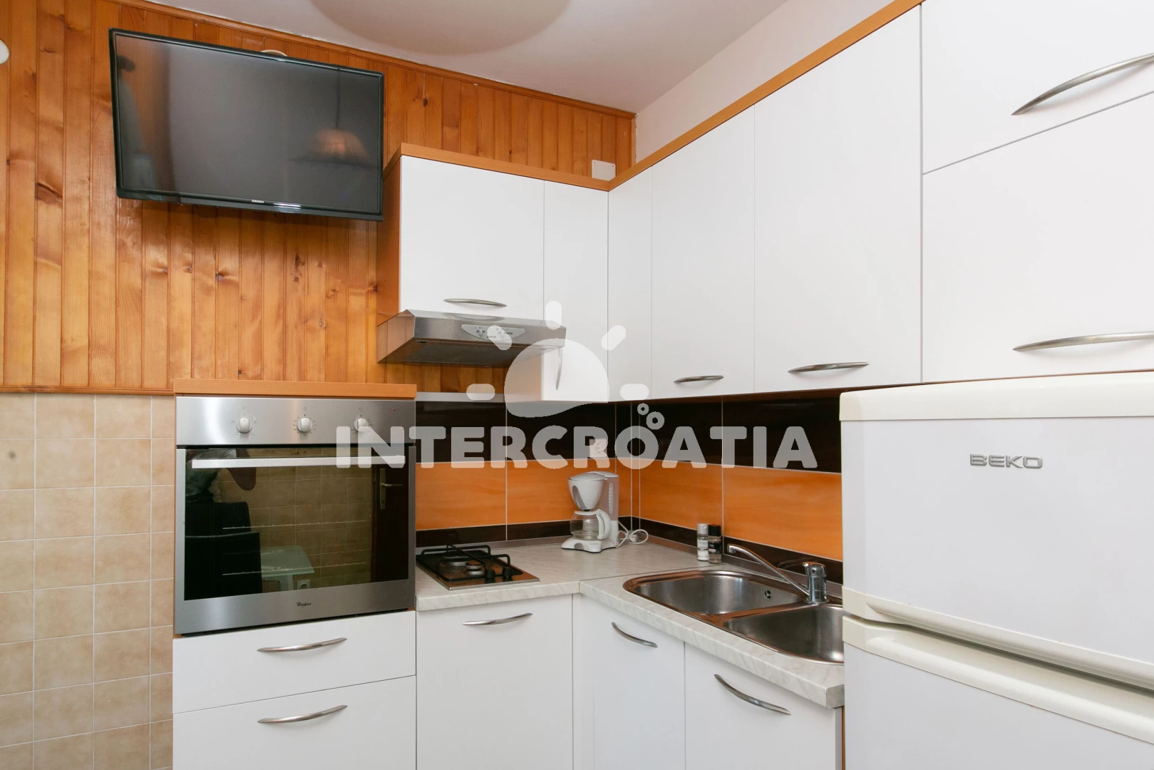 Apartmán (50 m2) s balkonem, a výhledem na moře. Nachází se ve 2. patře objektu. Apartmán má 2 ložnice a je vhodný pro až 4 osoby. Kuchyňská linka je vybavena varnou deskou, troubou, kávovarem,…