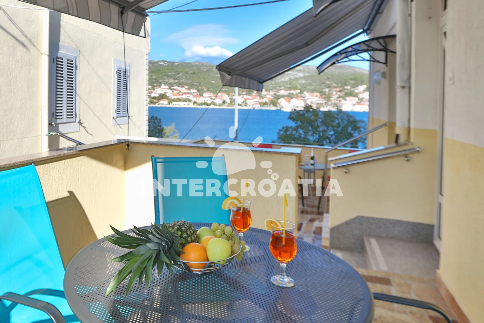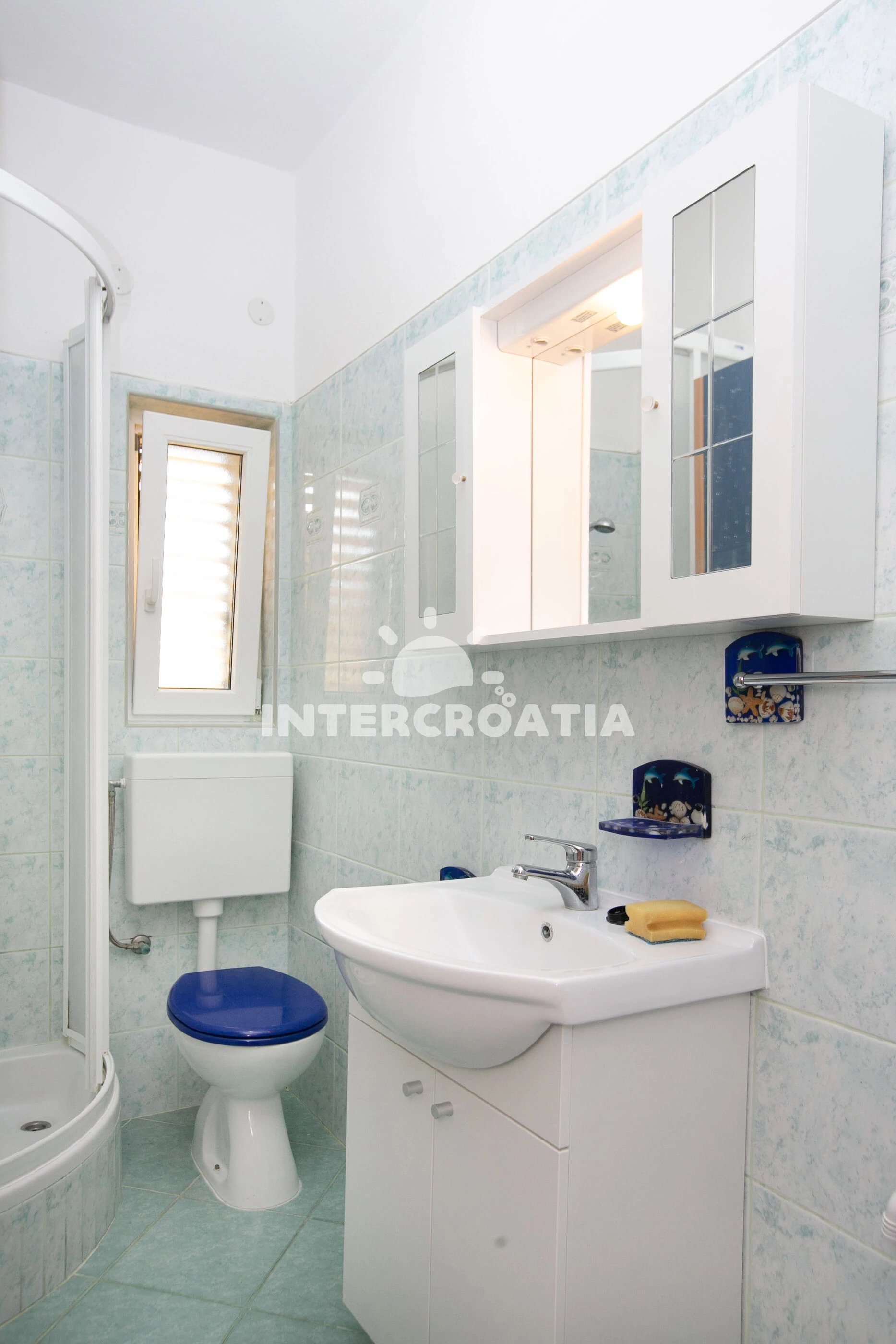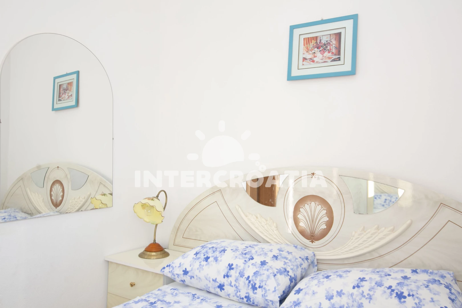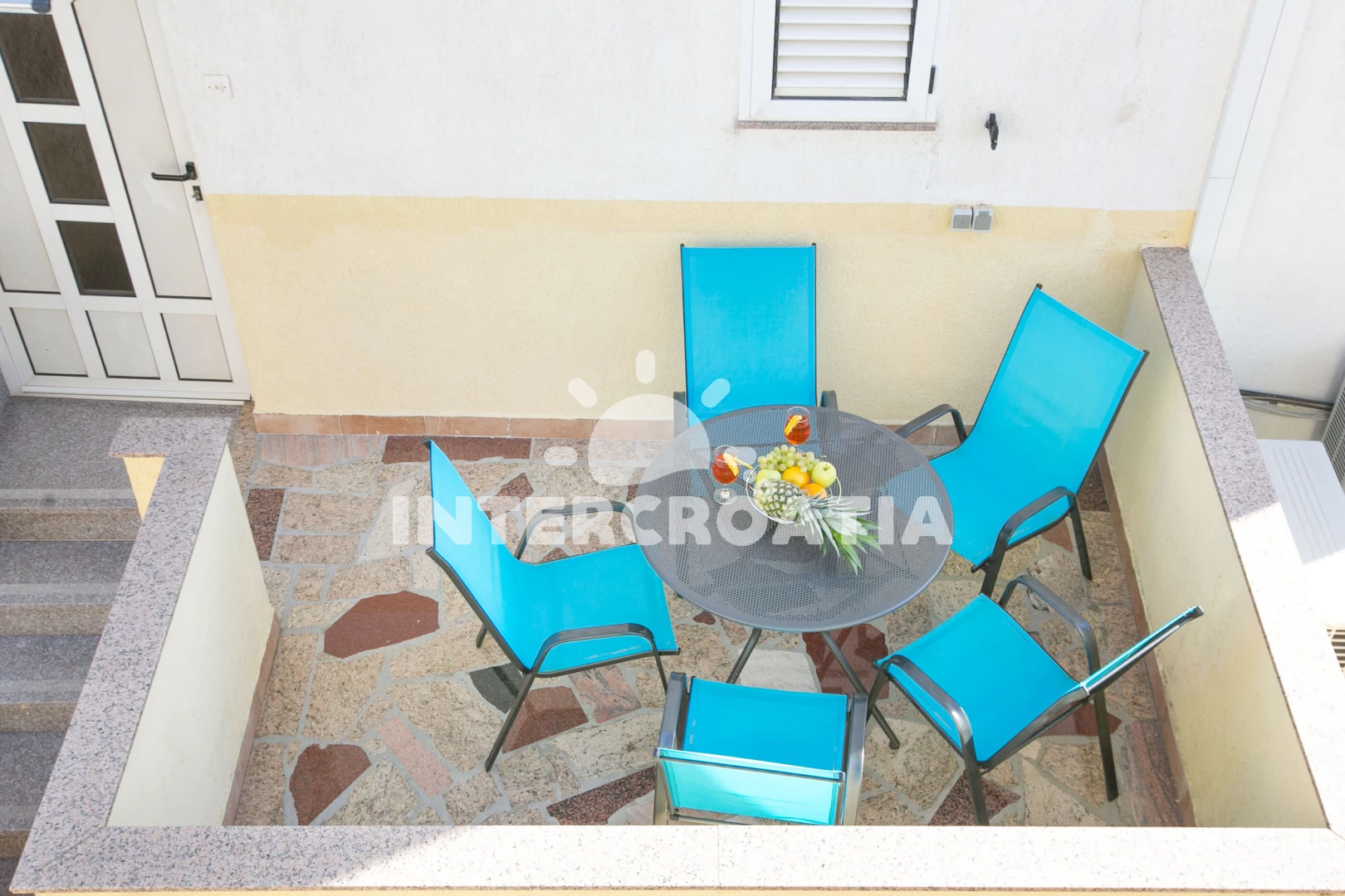 Apartmán (65 m2) s balkonem, a výhledem na moře. Nachází se v 1. patře objektu. Apartmán má 2 ložnice a je vhodný pro až 5 osob. Kuchyňská linka je vybavena varnou deskou, troubou, kávovarem, rychlovarnou konvicí, nádobím, lednicí, mrazákem. V obývací místnosti je rozložitelná pohovka (extra lůžko pro 1 osobu). K dispozici televize, žehlička. První ložnice s dvoulůžkem. Druhá ložnice s dvoulůžkem. Koupelna se sprchovým koutem, umyvadlem, WC. Dále samostatné WC.
