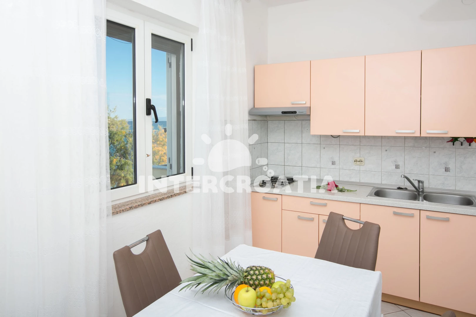 Apartmán (40 m2) s balkonem, a výhledem na moře. Nachází se v 1. patře objektu. Apartmán má 1 ložnici a je vhodný pro až 4 osoby. Kuchyňská linka je vybavena varnou deskou, troubou, kávovarem,…