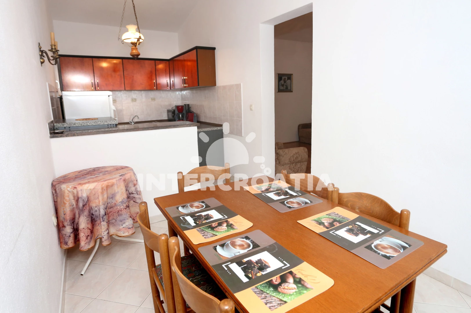 Vzdálenosti: Moře 250 m, pláž 250 m (oblázková a betonové desky), veřejná doprava 100 m, restaurace 400 m, supermarket 400 m, bar 400 m, centrum 2,5 km, směnárna 2,5 km, půjčovna kol 2,5 km, potápění 2,5 km, pošta 2,5 km, muzeum 2,5 km, banka 2,5 km, lékárna 2,5 km, ambulance 2,5 km, diskotéka 2,5 km, marina 3 km,