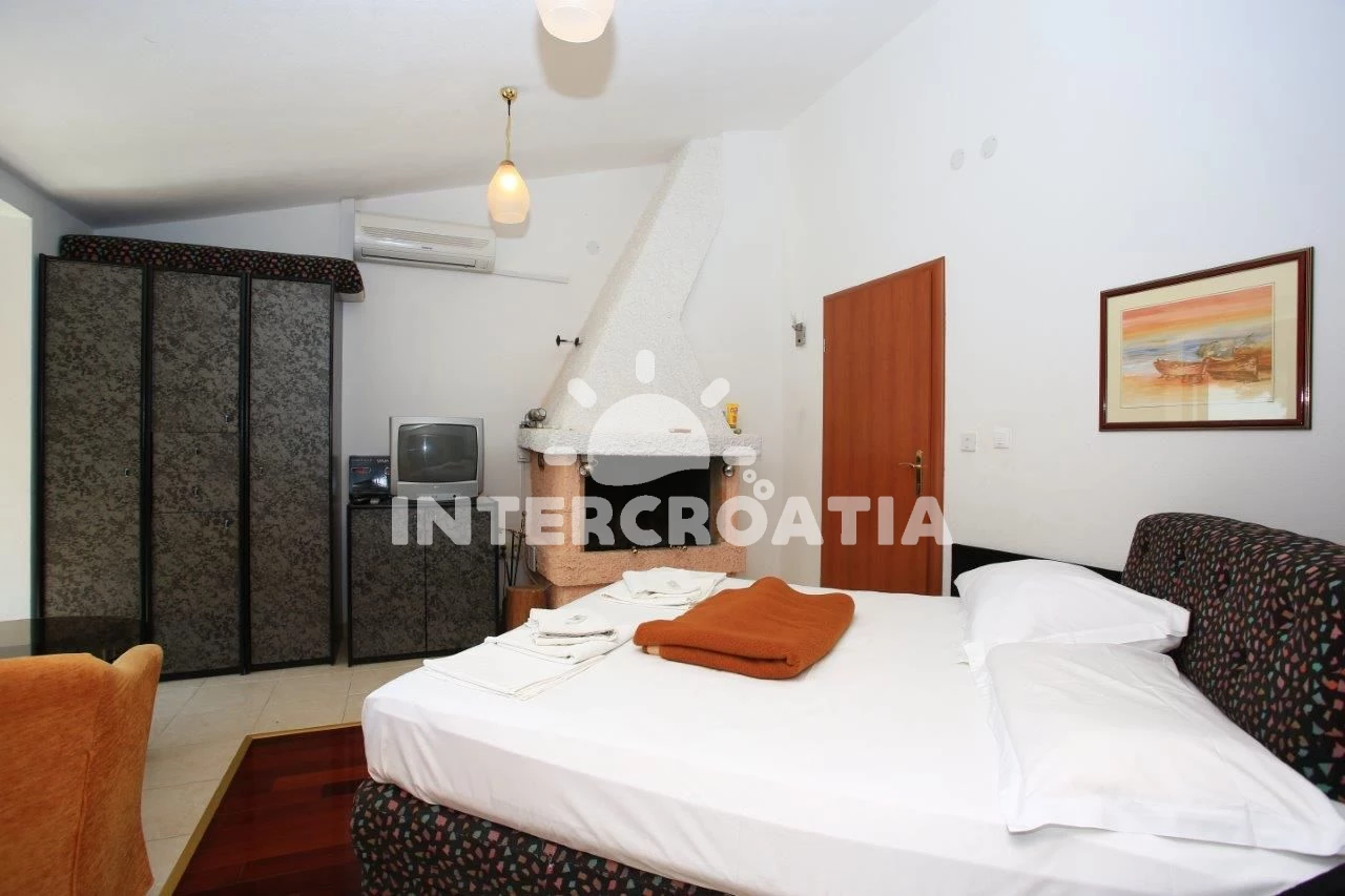 Vzdálenosti: Moře 10 m, pláž 10 m (oblázky), restaurace 10 m, bar 10 m, kotviště pro čluny 100 m, supermarket 100 m, veřejná doprava 300 m, směnárna 1 km, centrum 1 km, půjčovna motorových člunů 1 km, tenisové kurty 2 km, pošta 3 km, potápění 5 km, trajekt (Drvenik) 8 km, lékárna 10 km, diskotéka 15 km, muzeum 20 km, banka 20 km, ambulance 20 km, čerpací stanice 20 km, letiště (Split) 100 km,