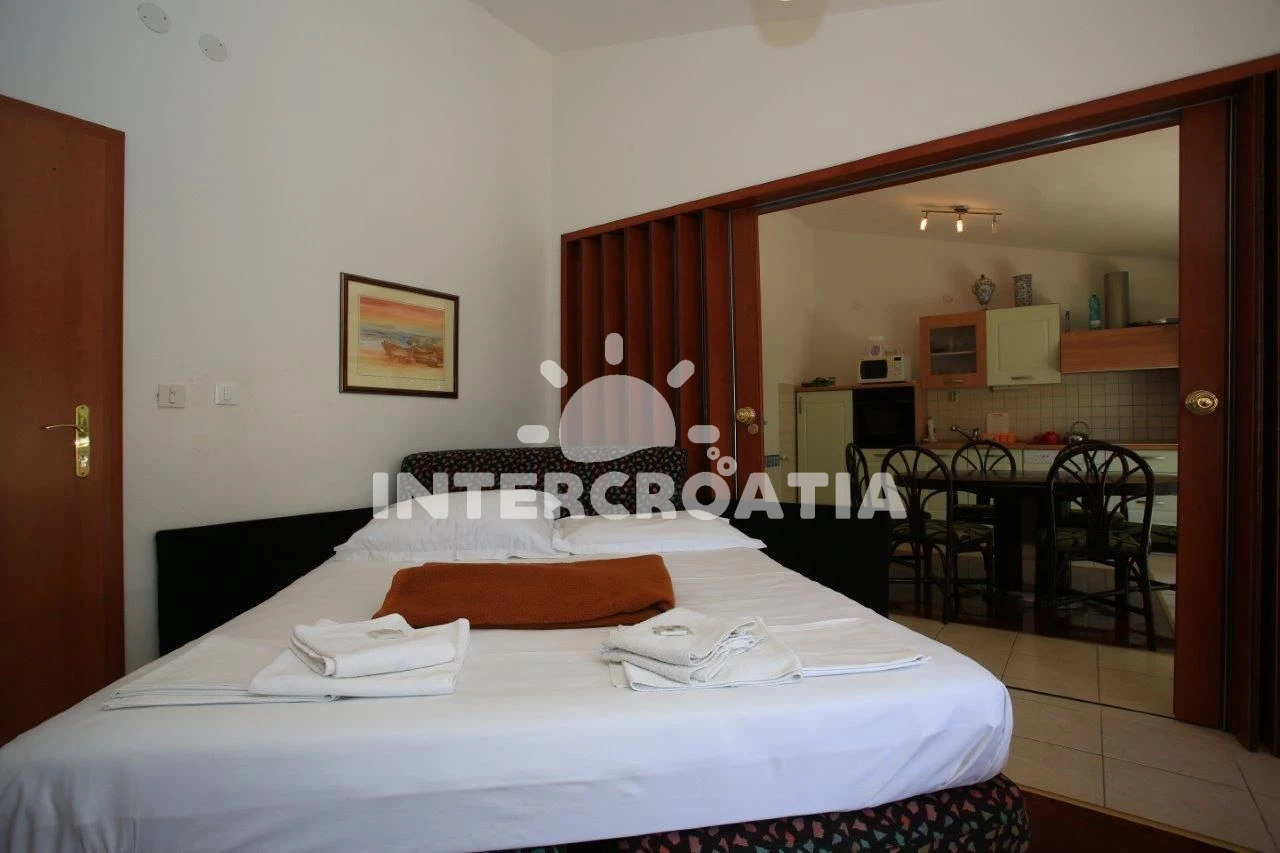 Apartmán (45 m2) s balkonem, a výhledem na moře. Nachází se ve 3. patře objektu. Apartmán má 1 ložnici a je vhodný pro až 2 osoby. Kuchyňská linka je vybavena varnou deskou, troubou, mikrovlnnou troubou, rychlovarnou konvicí, nádobím, lednicí, mrazákem. K dispozici televize, žehlička. Ložnice s dvoulůžkem.