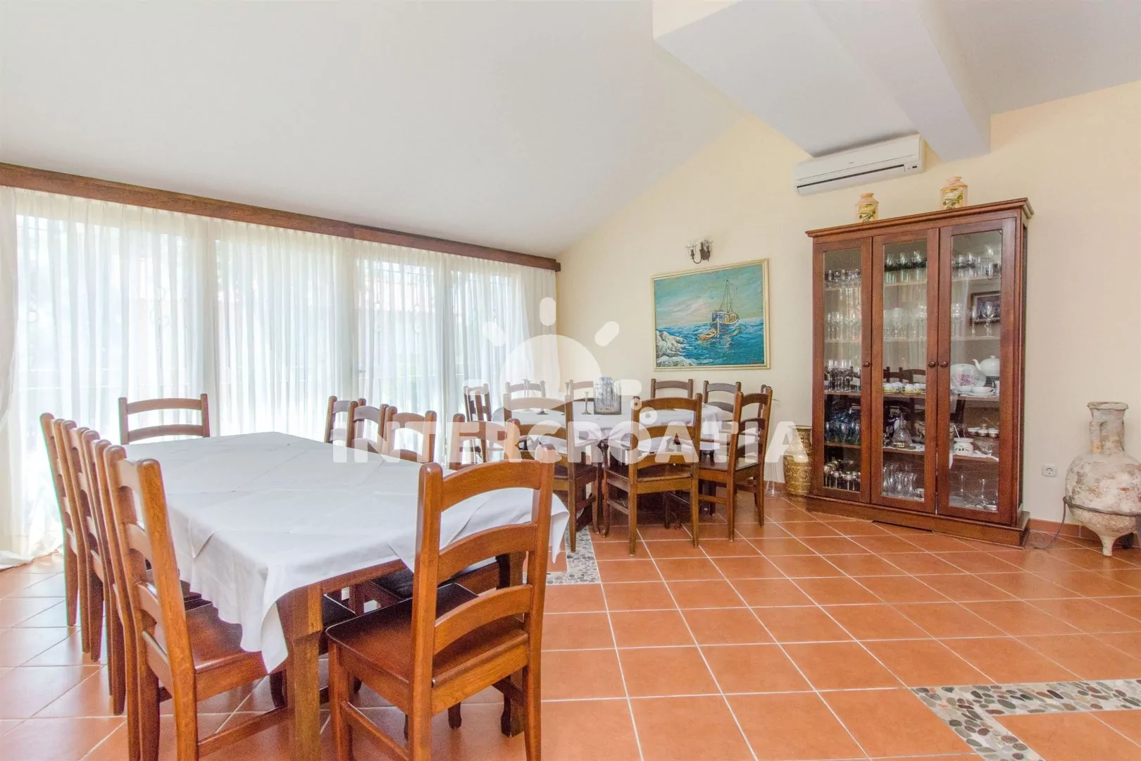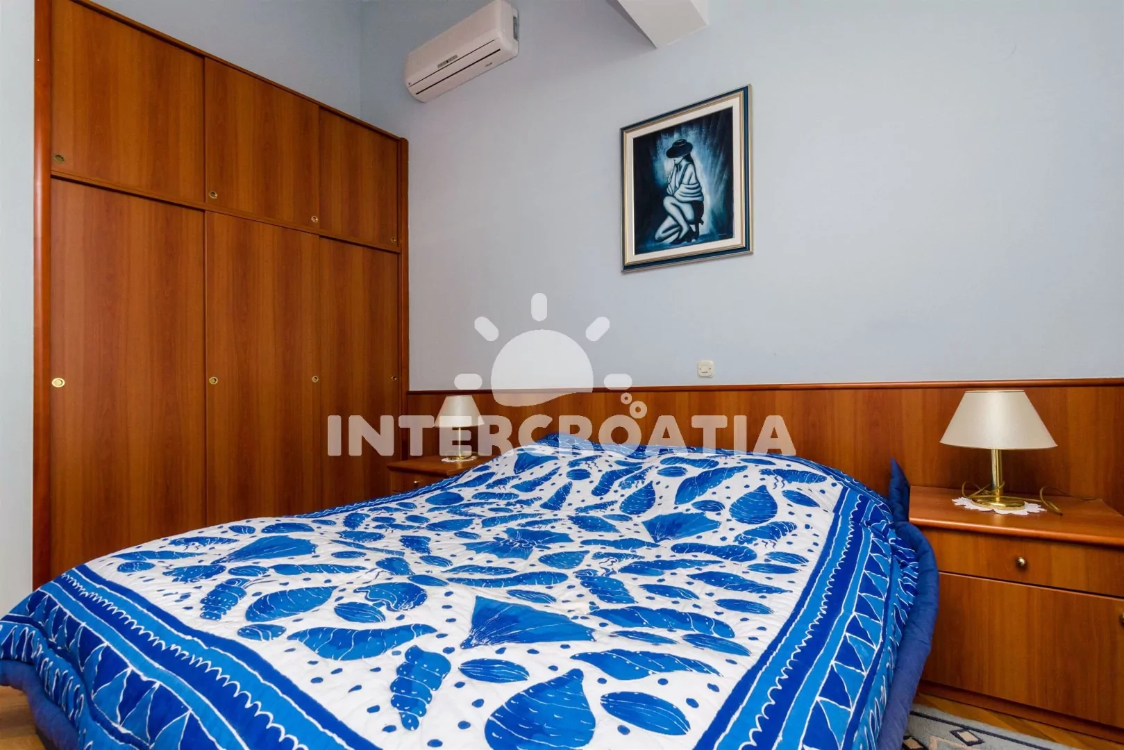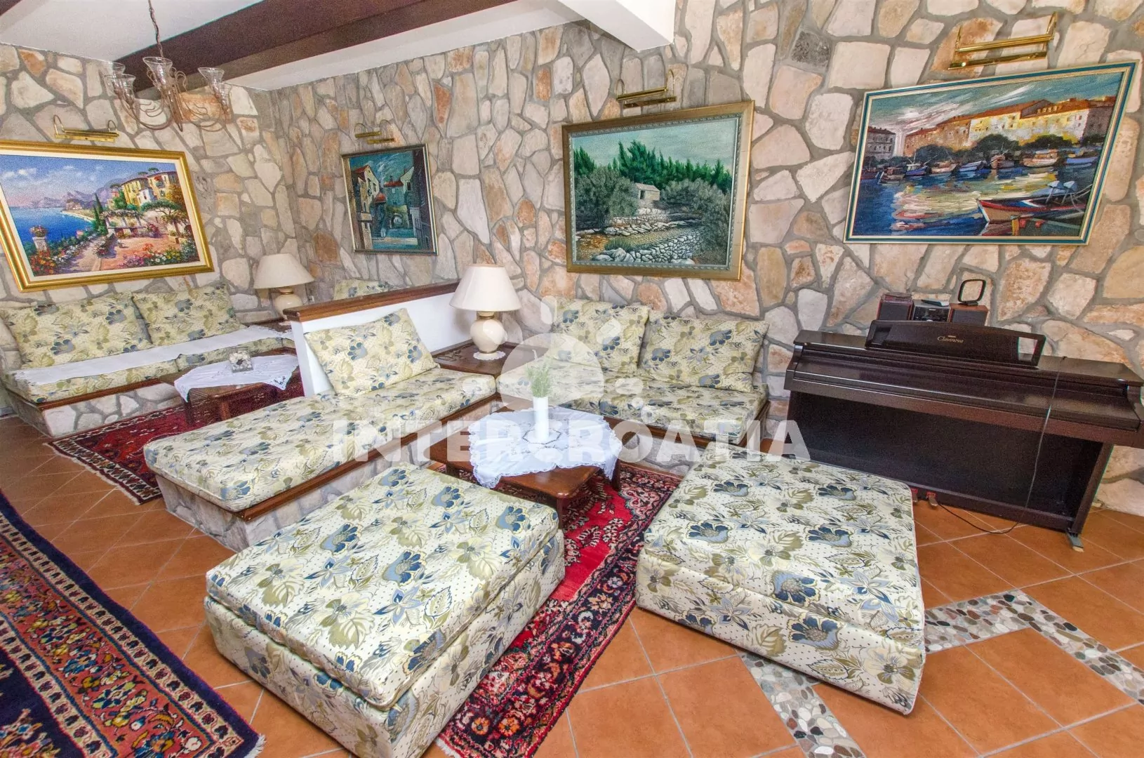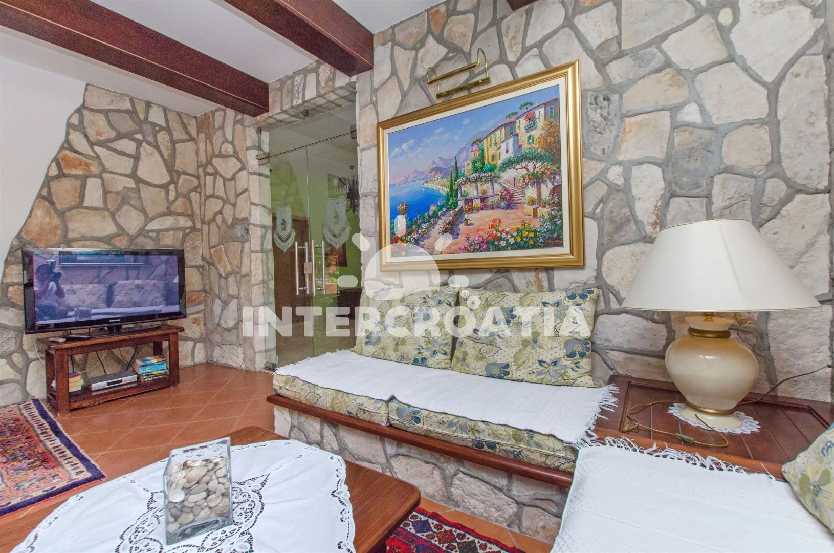 Apartmánový pokoj (18 m2) se nachází ve druhém patře domu a je vhodný pro maximálně 2 osoby. Apartmánový pokoj disponuje mini ledničkou, rádiem, klimatizací a samostatnou koupelnou se sprchou, umyvadlem a WC. Terasa s posezením a částečným výhledem na moře. Sdílená společenská místnost v přízemí s posezením a jídelními stoly. Dále k dispozici venkovní krb, sdílená sauna, sprcha a zapuštěný bazén. Parkování u objektu.
