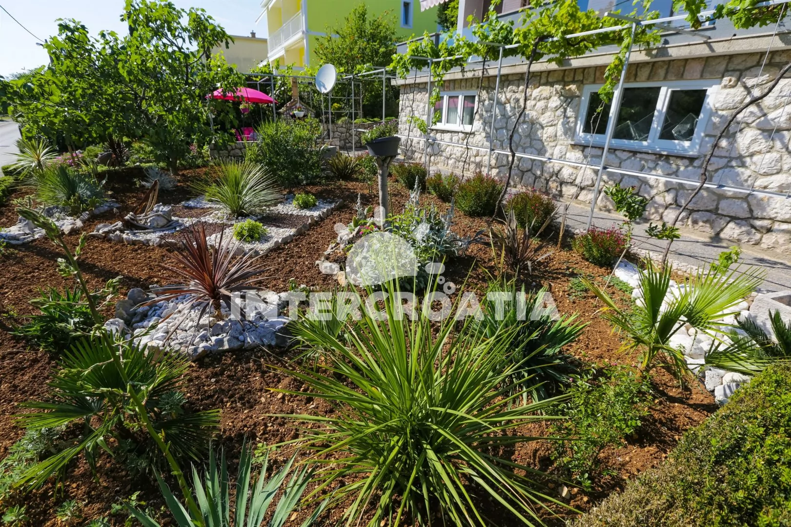 Vzdálenosti: Moře a oblázková-kamenitá pláž 180 m, centrum 2 km, restaurace 50 m, bar 100 m, supermarket 150 m, směnárna 200 m, minigolf, tenis 250 m, lékárna, ambulance, diskotéka 2 km, banka 2,1 km, letiště 21 km.