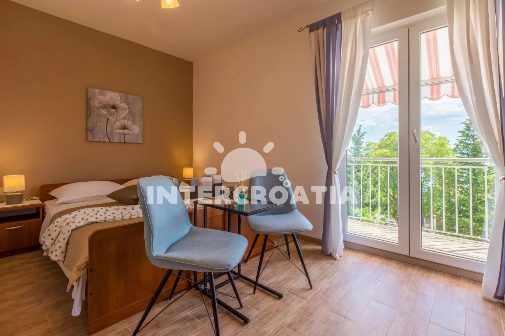 Pokoj (20 m2) s balkonem a výhledem na moře se nachází v 1. patře vily a je vhodný pro 2 osoby. Pokoj je vybavený jedním dvoulůžkem, televizí se satelitním programem, malou chladničkou, klimatizací a vstupem na balkon. Koupelna se sprchovým koutem, umyvadlem a wc. Hostům je k dispozici parkování u objektu zdarma.