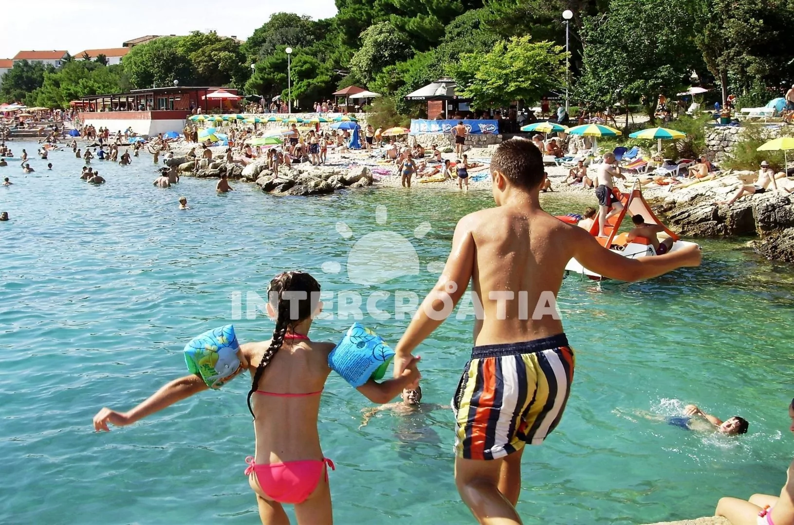 Vzdálenosti: Moře 300 m, pláž (oblázková a betonové desky) 350 m (cesta se schody), pláž 850 m (po cestě, bez schodů), centrum 500 m, market 100 m, pošta 300 m, lékárna 500 m, nemocnice 500 m, restaurace 350 m, muzeum 500 m, směnárna 300 m, banka 500 m, kotviště pro čluny 500 m, potápěčský klub 500 m, půjčovna motorových člunů 500 m, půjčovna kol 500 m, tenisové kurty 500 m, venkovní bazén 500 m, vnitřní bazén 500 m, bar 350 m, čerpací stanice 300 m, veřejná doprava 350 m, trajekt (Valbiska – Krk) 35 km, letiště (Rijeka) 25 km.