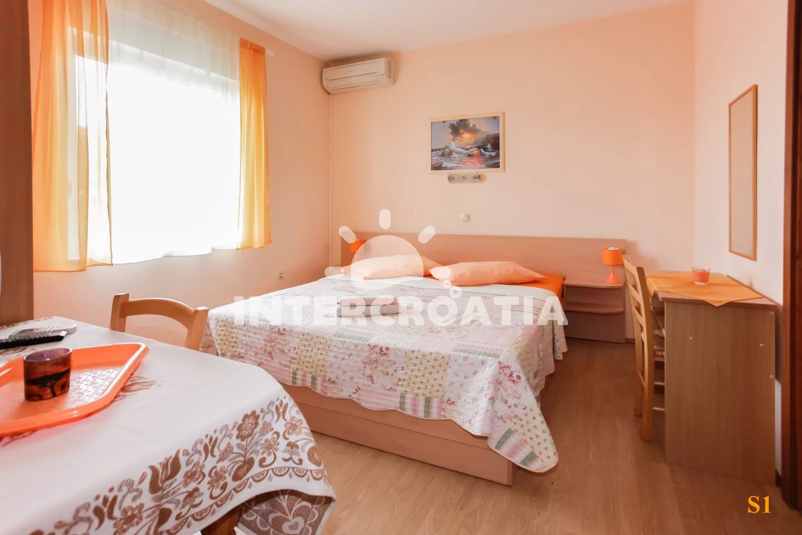Apartmán pro 2 osoby se nachází v přízemí domu. Pokoj s jedním dvoulůžkem, jídelním stolem, televizí se satelitním programem, malou chladničkou a klimatizací. Koupelna se sprchovým koutem, umyvadlem a wc. Hostům je k dispozici terasa s venkovním posezením, výhledem na moře a parkování u objektu zdarma.
