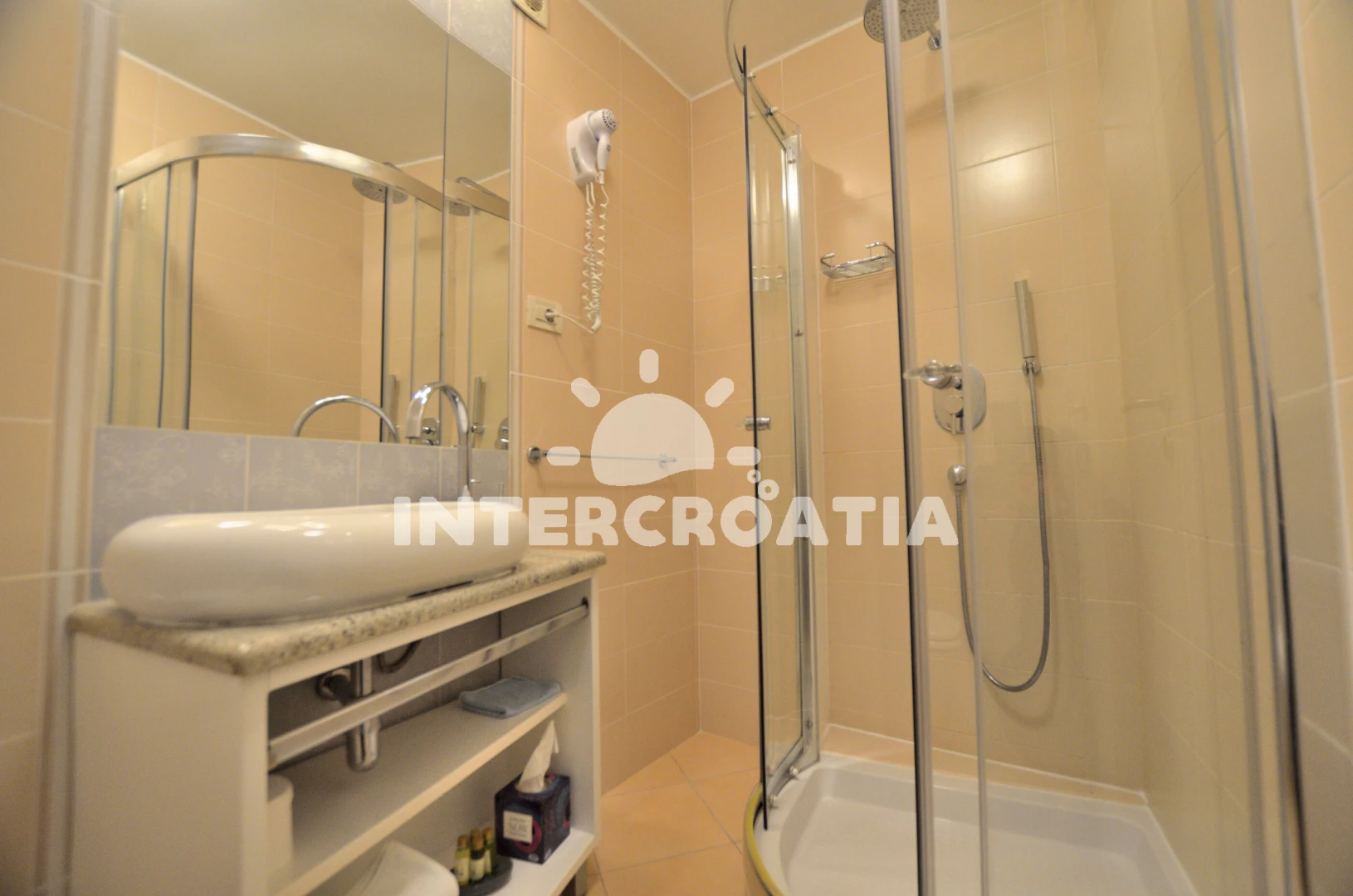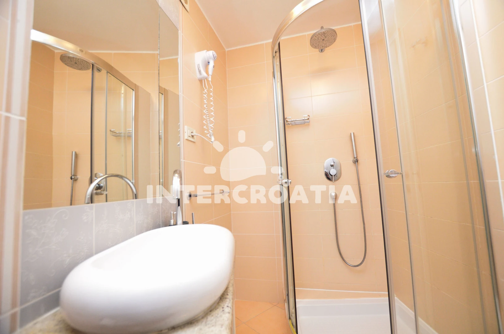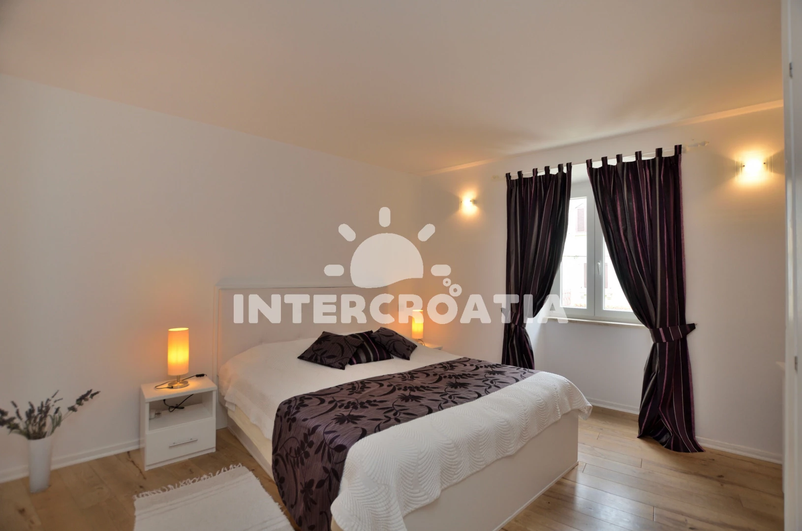 Vzdálenosti: Moře 70 m, pláž 300 m (oblázková a betonové desky), centrum 5 m, supermarket 20 m, restaurace 50 m, bar 50 m, půjčovna kol 100 m, diskotéka 100 m, muzeum 100 m, pošta 100 m, veřejná doprava 150 m, lékárna 150 m, směnárna 150 m, čerpací stanice 150 m, banka 150 m, mini golf 300 m, tenisové kurty 300 m, ambulance 300 m, potápění 500 m, marina 1 km, trajekt (Merag) 12 km, letiště (Rijeka) 25 km,