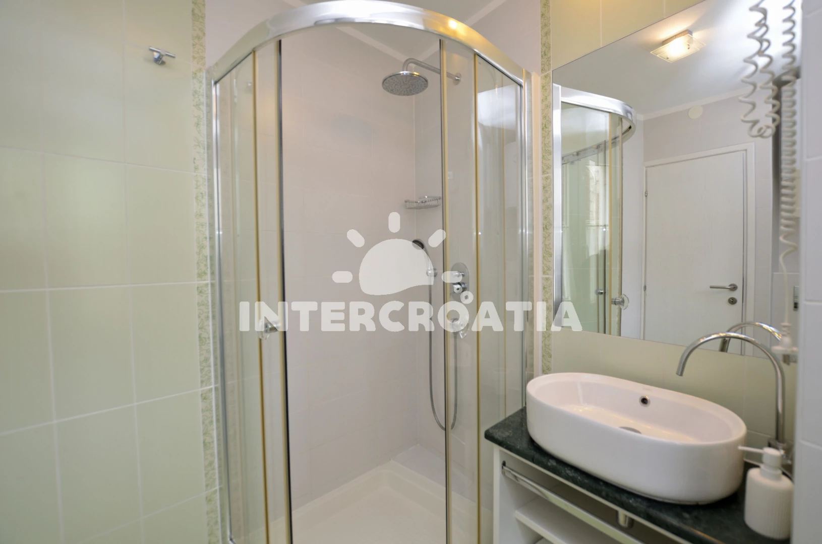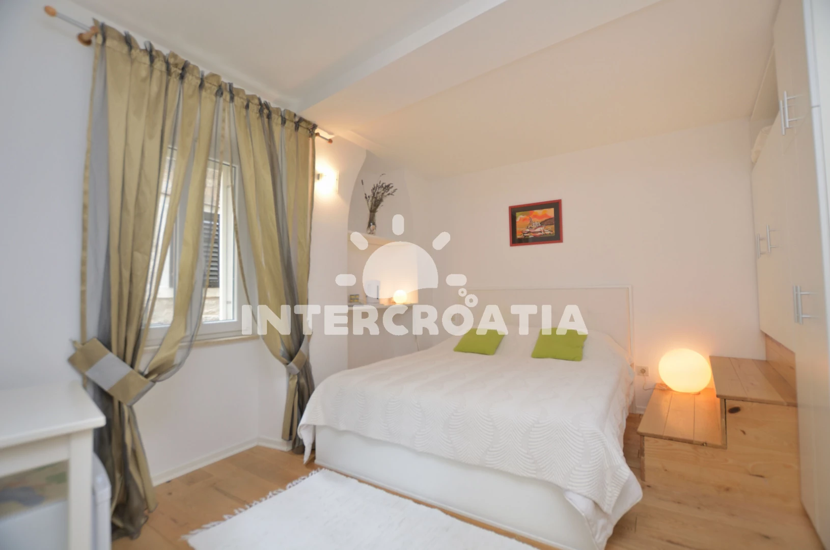 Vzdálenosti: Moře 70 m, pláž 300 m (oblázková a betonové desky), centrum 5 m, supermarket 20 m, restaurace 50 m, bar 50 m, půjčovna kol 100 m, diskotéka 100 m, muzeum 100 m, pošta 100 m, veřejná doprava 150 m, lékárna 150 m, směnárna 150 m, čerpací stanice 150 m, banka 150 m, mini golf 300 m, tenisové kurty 300 m, ambulance 300 m, potápění 500 m, marina 1 km, trajekt (Merag) 12 km, letiště (Rijeka) 25 km,