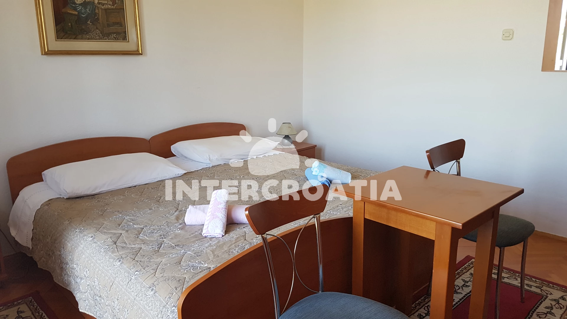 Apartmánový pokoj se nachází 1000 m od moře a pláže. Pláž je skalnatá, oblázková, větší kamení a betonové desky. Parkování je před domem.