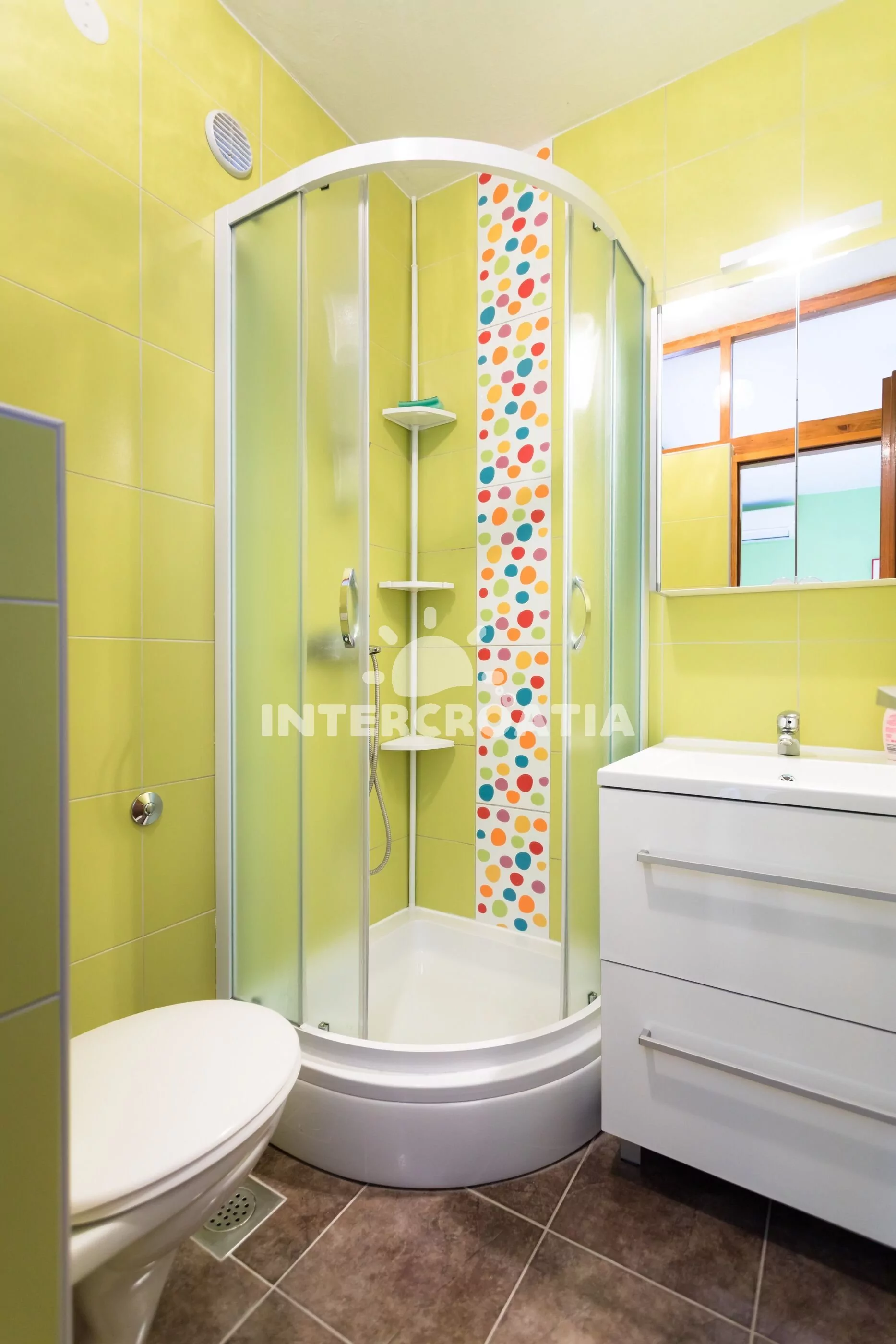 Apartmánový dům se zahrádkou, terasou s venkovním posezením a grilem. Dům se nachází 700 m od moře a 1 km od oblázkové pláže. K dispozici jsou tři klimatizované apartmány. Parkovací místa přímo u domu.