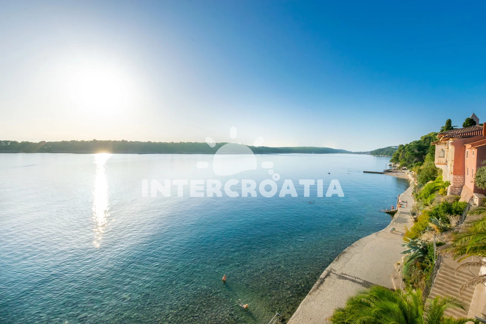 Vzdálenosti: centrum 1 m, Moře 5 m, pláž 30 m (betonové desky), supermarket 50 m, muzeum 50 m, restaurace 50 m, bar 50 m, lékárna 100 m, banka 500 m, pošta 500 m, veřejná doprava 1 km, směnárna 1 km, marina 1 km, ambulance 1,2 km, čerpací stanice 1,2 km, tenisové kurty 1,5 km, potápění 1,5 km, mini golf 1,5 km, půjčovna kol 2 km, půjčovna motorových člunů 2 km, trajekt (Misnjak) 12 km, letiště (Rijeka) 70 km,