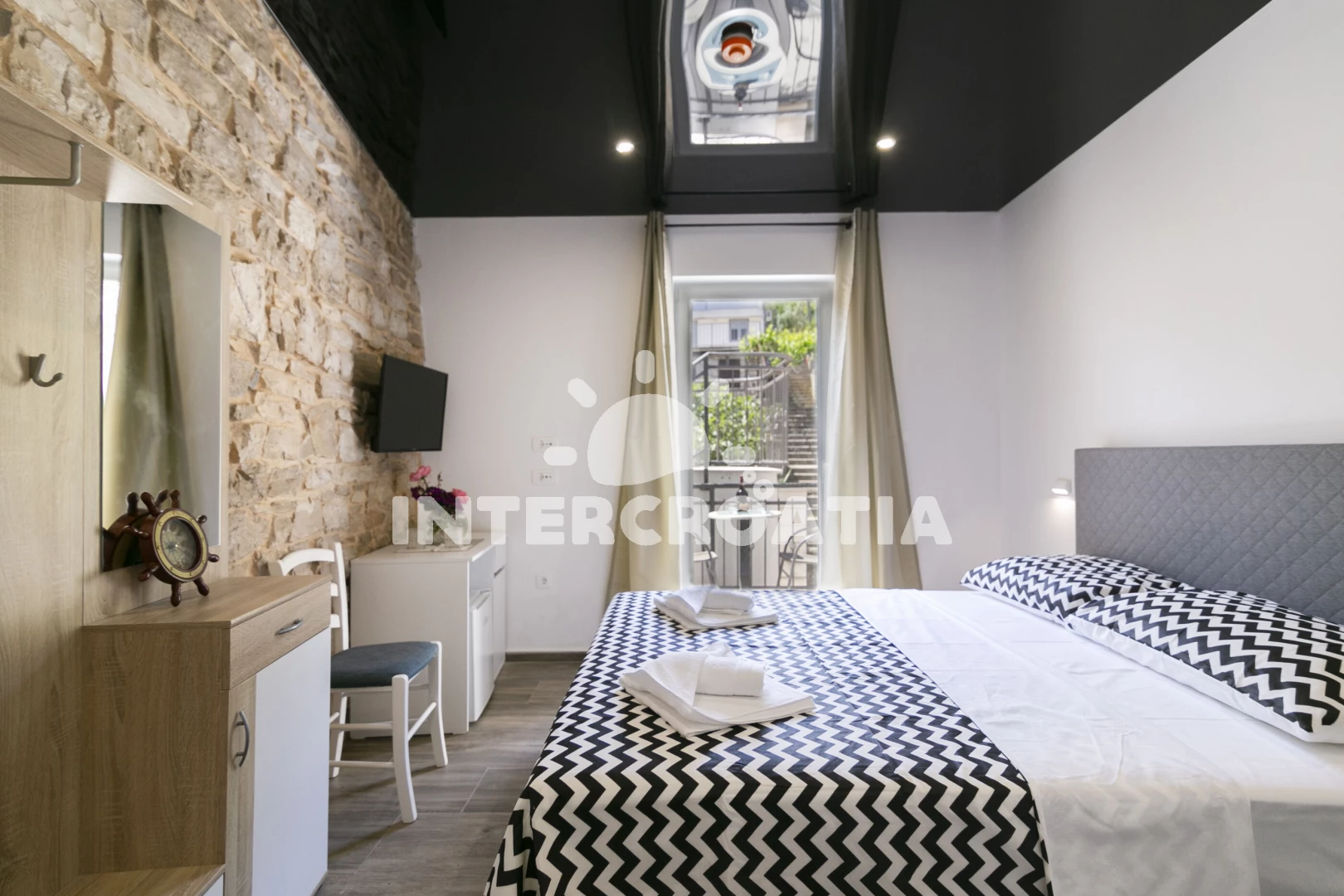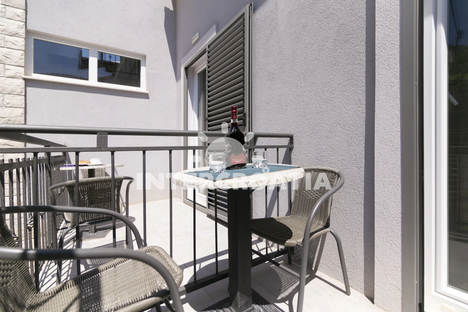 Vzdálenosti: Moře 10 m, pláž 400 m (oblázky), restaurace 10 m, bar 10 m, centrum 200 m, marina 200 m, supermarket 200 m, banka 6 km, pošta 6 km, ambulance 6 km, lékárna 6 km, trajekt (Rogač) 10 km, letiště (Split) 40 km,