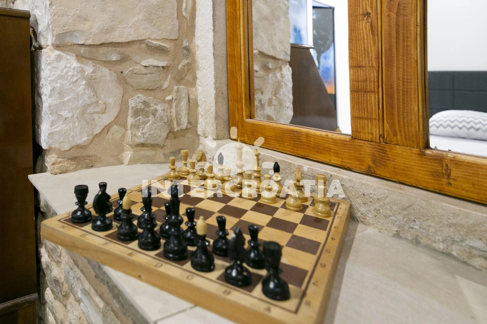 Vzdálenosti: Moře 10 m, pláž 400 m (oblázky), restaurace 10 m, bar 10 m, centrum 200 m, marina 200 m, supermarket 200 m, banka 6 km, pošta 6 km, ambulance 6 km, lékárna 6 km, trajekt (Rogač) 10 km, letiště (Split) 40 km,