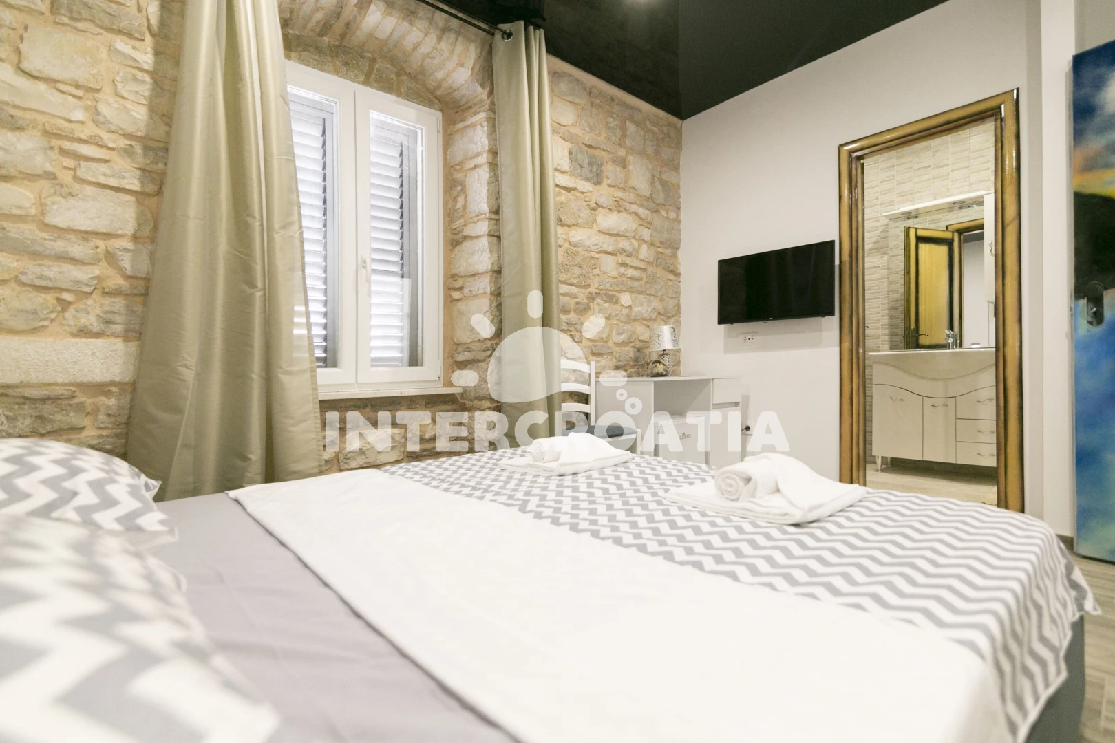 Vzdálenosti: Moře 10 m, pláž 400 m (oblázky), restaurace 10 m, bar 10 m, centrum 200 m, marina 200 m, supermarket 200 m, banka 6 km, pošta 6 km, ambulance 6 km, lékárna 6 km, trajekt (Rogač) 10 km, letiště (Split) 40 km,