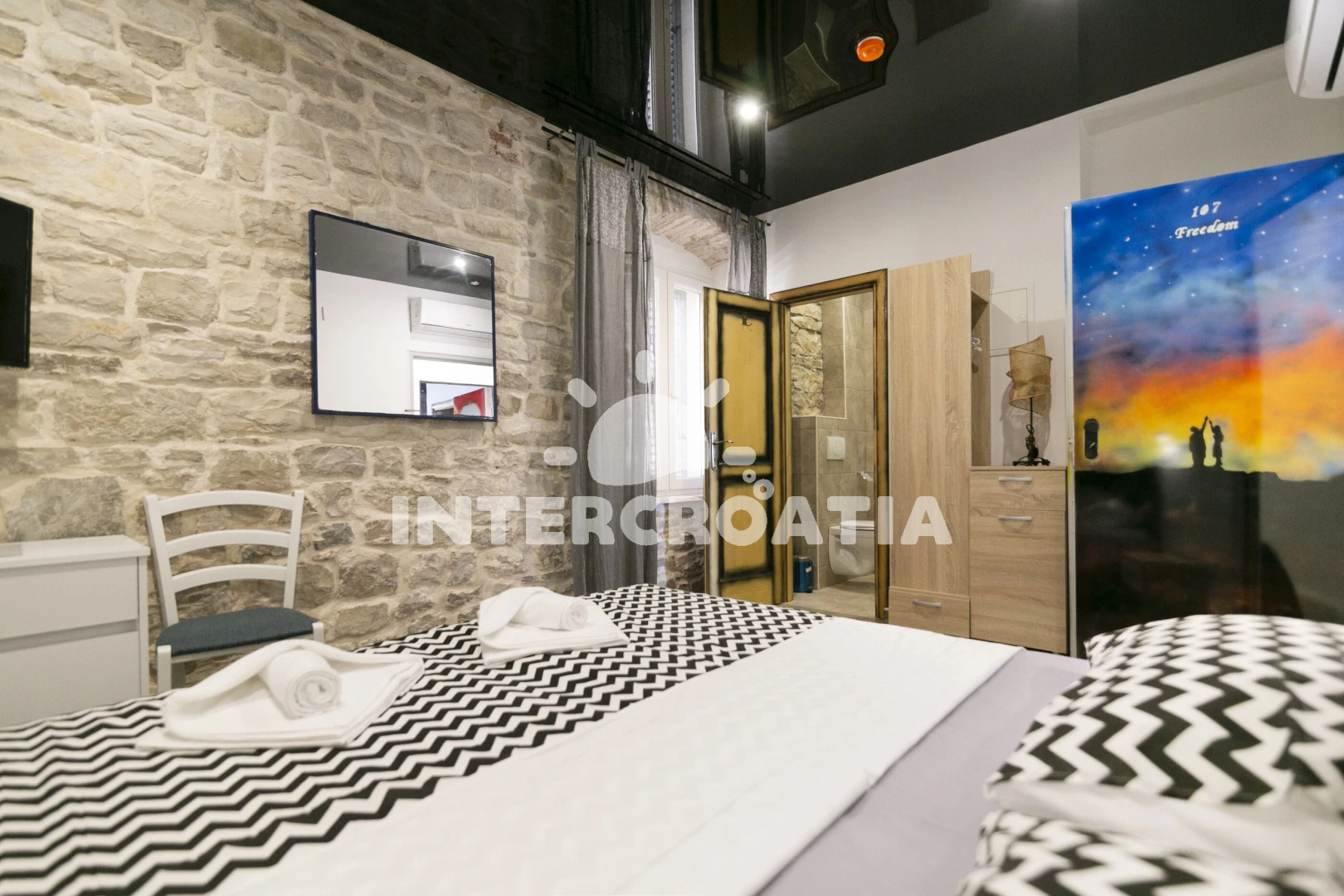 Vzdálenosti: Moře 10 m, pláž 400 m (oblázky), restaurace 10 m, bar 10 m, centrum 200 m, marina 200 m, supermarket 200 m, banka 6 km, pošta 6 km, ambulance 6 km, lékárna 6 km, trajekt (Rogač) 10 km, letiště (Split) 40 km,