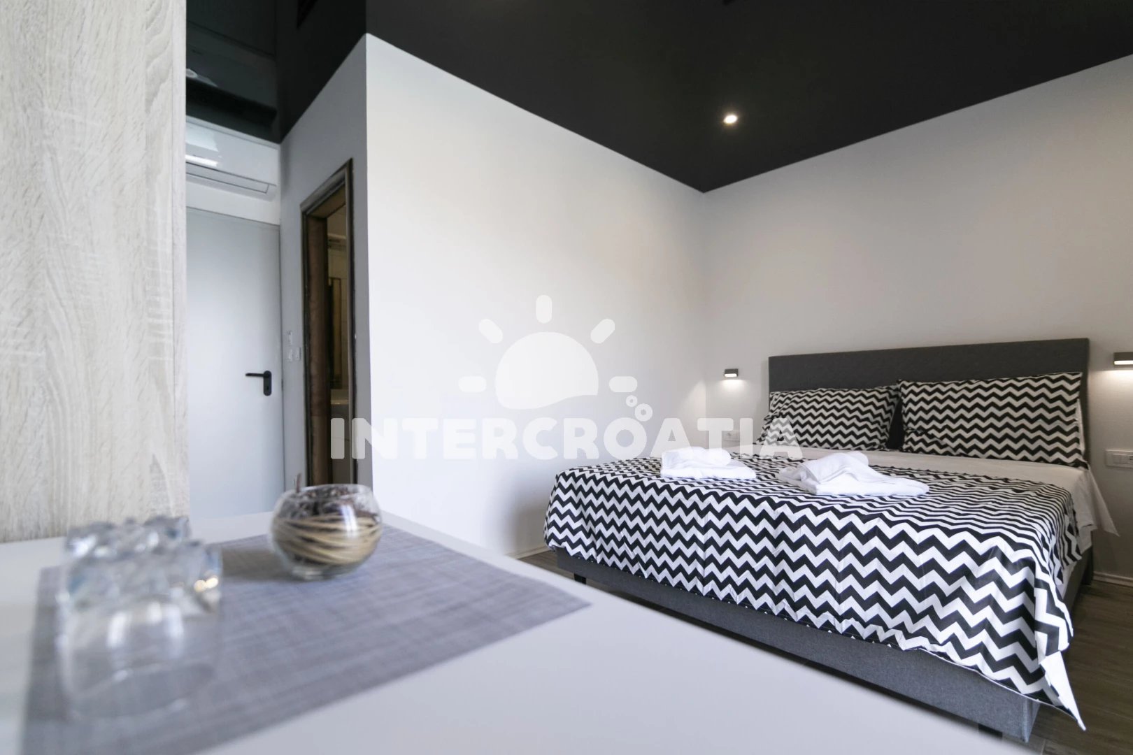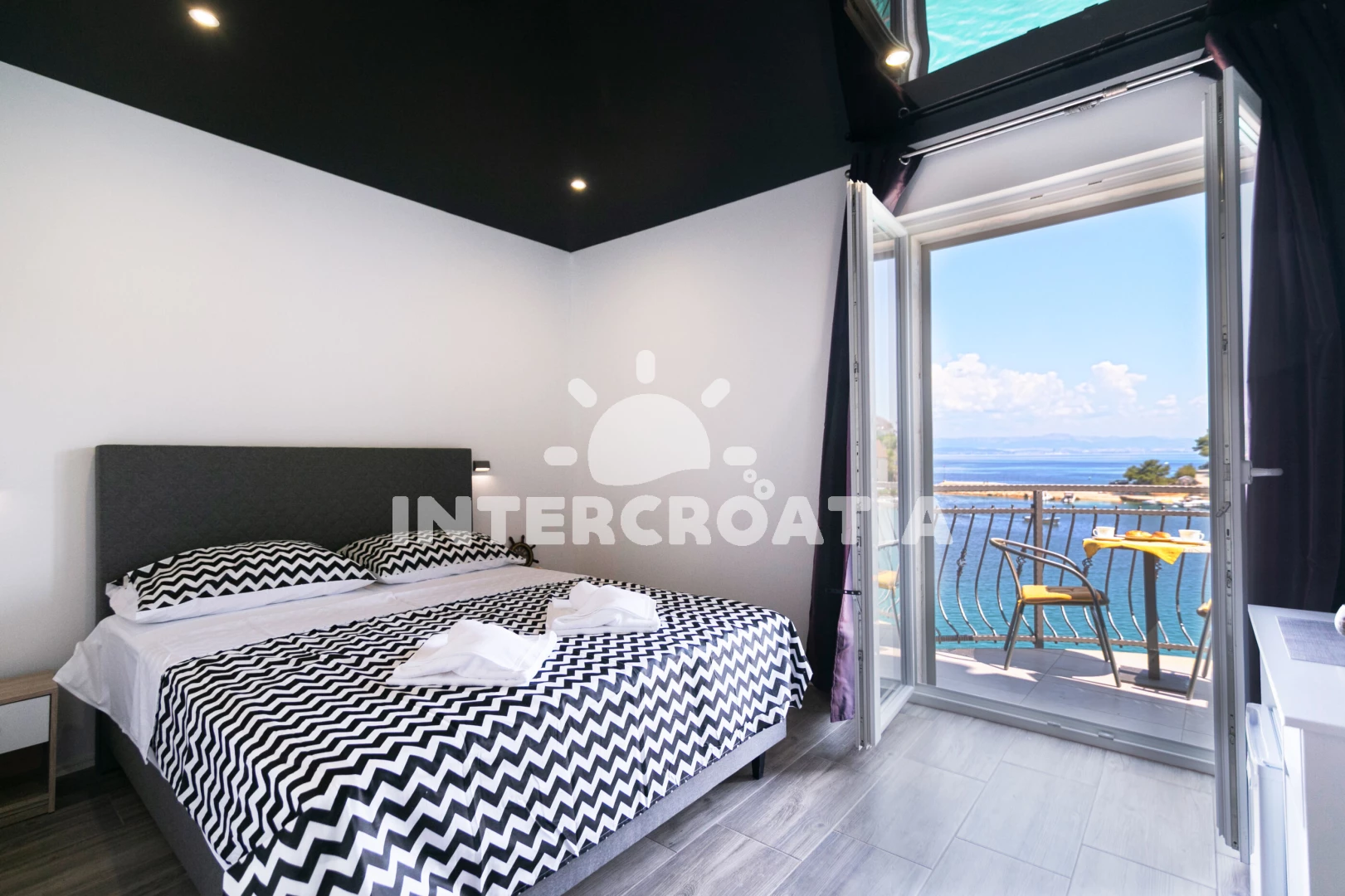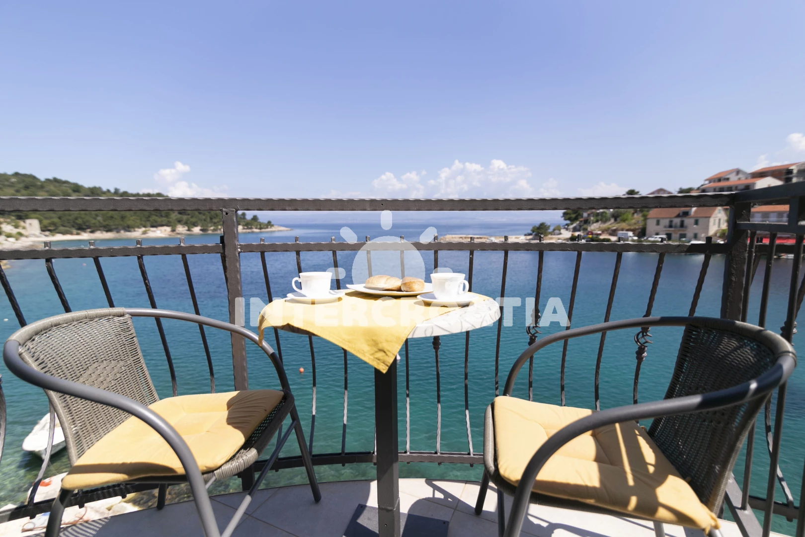 Vzdálenosti: Moře 10 m, pláž 400 m (oblázky), restaurace 10 m, bar 10 m, centrum 200 m, marina 200 m, supermarket 200 m, banka 6 km, pošta 6 km, ambulance 6 km, lékárna 6 km, trajekt (Rogač) 10 km, letiště (Split) 40 km,