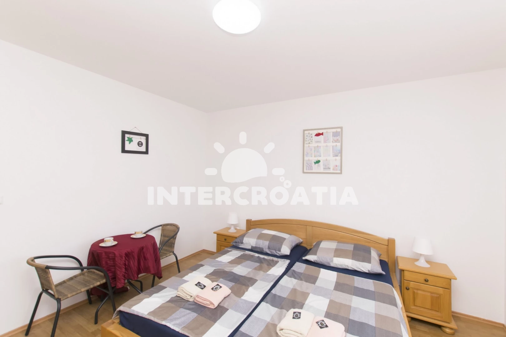 Vzdálenosti: Moře 100 m, pláž 100 m (oblázková a betonové desky), bar 30 m, restaurace 30 m, ambulance 200 m, supermarket 200 m, lékárna 200 m, centrum 300 m, park Plitvice 9 km, trajekt (Zadar) 40 km, letiště (Zadar) 40 km,
