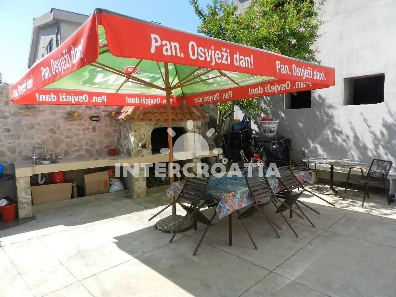 Vzdálenosti: Moře 250 m, pláž (oblázková) 400 m, centrum 300 m, market 200 m, restaurace 500 m, pošta 300 m, lékárna 200 m, nemocnice 200 m, směnárna 200 m, banka 200 m, přístav 250 m, veřejná doprava 200 m, trajekt (Zadar) 65 km, letiště (Zadar) 65 km.