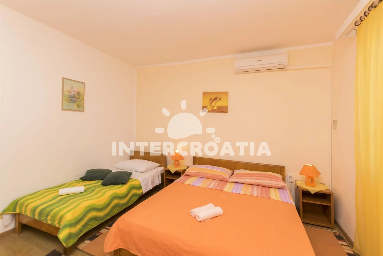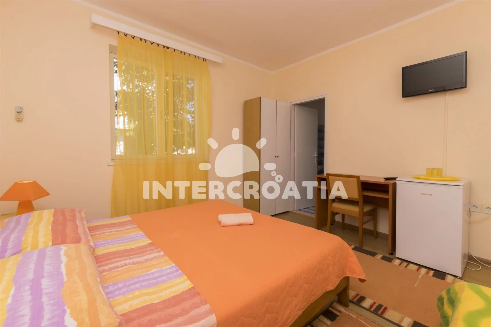 V Severní Dalmácii, 3,2 km na východ od rybářského městečka Tribunj a 14 km severozápadně od malebného letoviska Šibenik. Na pláž dojdete pěšky po 400 metrech.