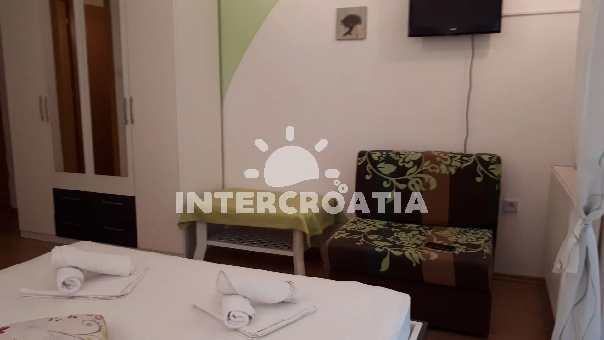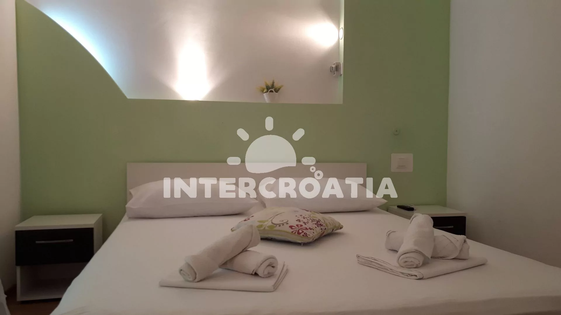 Vodice bývala rybářskou vesnicí, dnes je oblíbeným turistickým centrem. Apartmánový dům je umístěný 1,2 km od moře a oblázkové pláže Male Vrulje. Tato menší pláž se nachází v blízkosti přístavu a centra města. Pláž kromě oblázků dotváří betonové plochy, na kterých mohou návštěvníci ležet. Vstup do moře je krásně pozvolný. Na mořské hladině jsou nafukovací atrakce, které nejvíce zaujmou děti. Promenáda kolem pláže je zastíněná stromy. Pěšky snadno zajdete do supermarketu, kaváren a restaurací. Sousední oblázková pláž Hangar patří k populárním rodinným místům. Turisté si užijí sportovní vyžití, oddech, koupání a posezení v restauracích s výhledem na moře. Okolí letoviska nabízí řadu poznávacích stezek, kam můžete vyrazit na cyklistickou projížďku. Jedním z důvodů, proč turisté navštěvují Vodici, je tamní Akvárium a muzeum námořní tradice. Letovisko nezůstává pozadu ani s kulturním programem. Každoročně pořádá Vodické hry, Vodička feštu a slavnost Panny Marie Karmelské. Významné společenské události vás ale čekají v Šibeniku. Zúčastněte se Páteční slavnosti, středověkých trhů, gastronomických a hudebních večerů. Rozmanité dění pro každou věkovou kategorii se koná v rámci Šibenického kulturního léta. Z šibenických památek vás okouzlí katedrála sv. Jakuba, paláce a městské pevnosti. Pěší túru nebo jen procházku nejkrásnějšími přírodními místy v Chorvatsku zažijete v Národním parku Krka a Národním parku Plitvická jezera.
