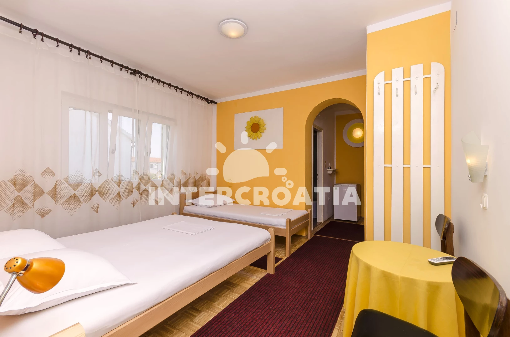 Vzdálenosti: Moře 260 m, pláž 430 m (oblázková a betonové desky), supermarket 215 m, veřejná doprava 215 m, lékárna 215 m, ambulance 215 m, směnárna 215 m, banka 215 m, centrum 300 m, pošta 300 m, bar 300 m, restaurace 300 m, park Plitvice 25 km, letiště (Zadar) 65 km, trajekt (Zadar) 65 km,