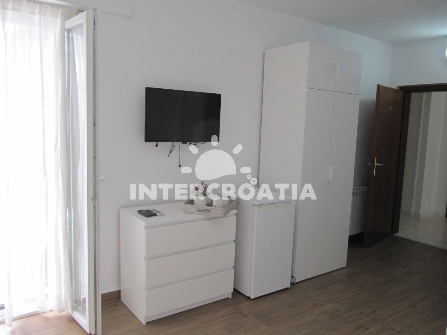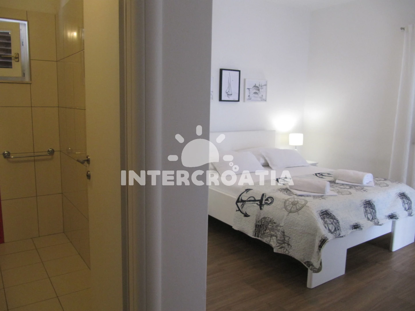 Apartmánový pokoj se nachází 30 m od moře a pláže. Pláž je skalnatá, oblázková a betonové desky. Apartmánový pokoj disponuje bazénem s lehátky pro ubytované hosty. U objektu je k dispozici společná zahrada s posezením a grilem.