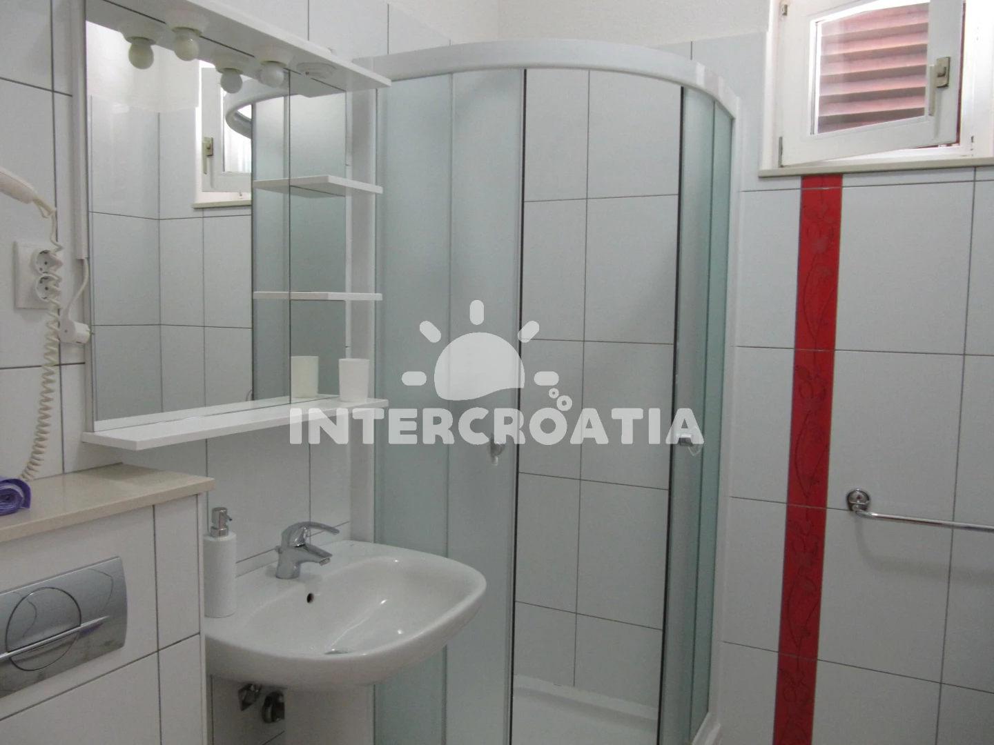 Apartmánový pokoj se nachází 30 m od moře a pláže. Pláž je skalnatá, oblázková a betonové desky. Apartmánový pokoj disponuje bazénem s lehátky pro ubytované hosty. U objektu je k dispozici společná zahrada s posezením a grilem.