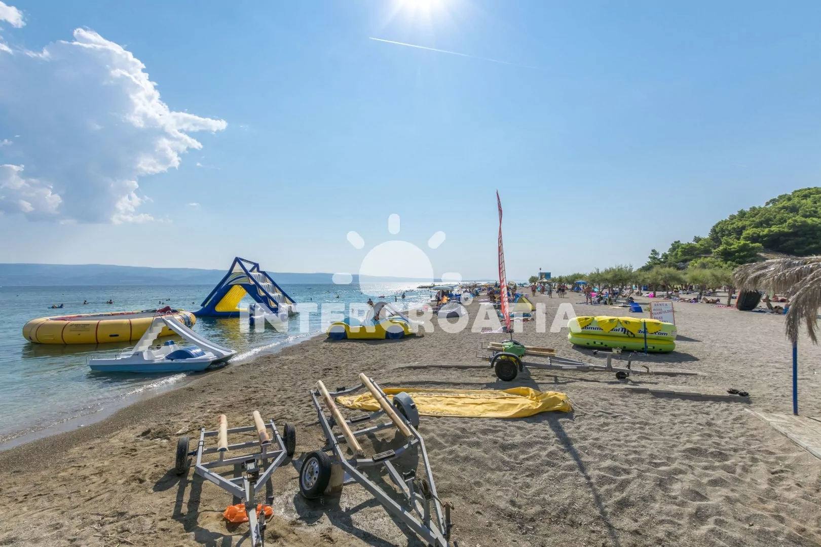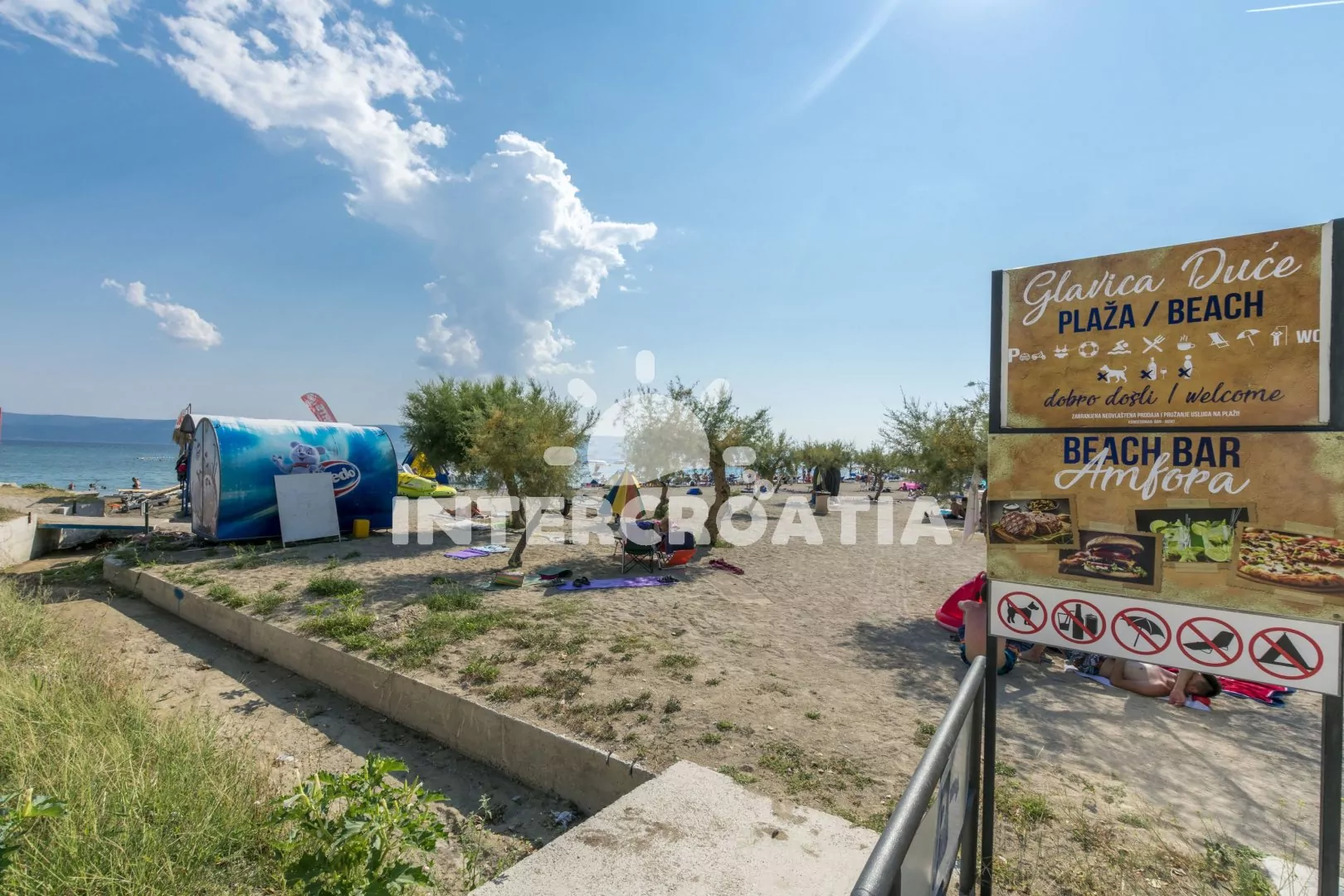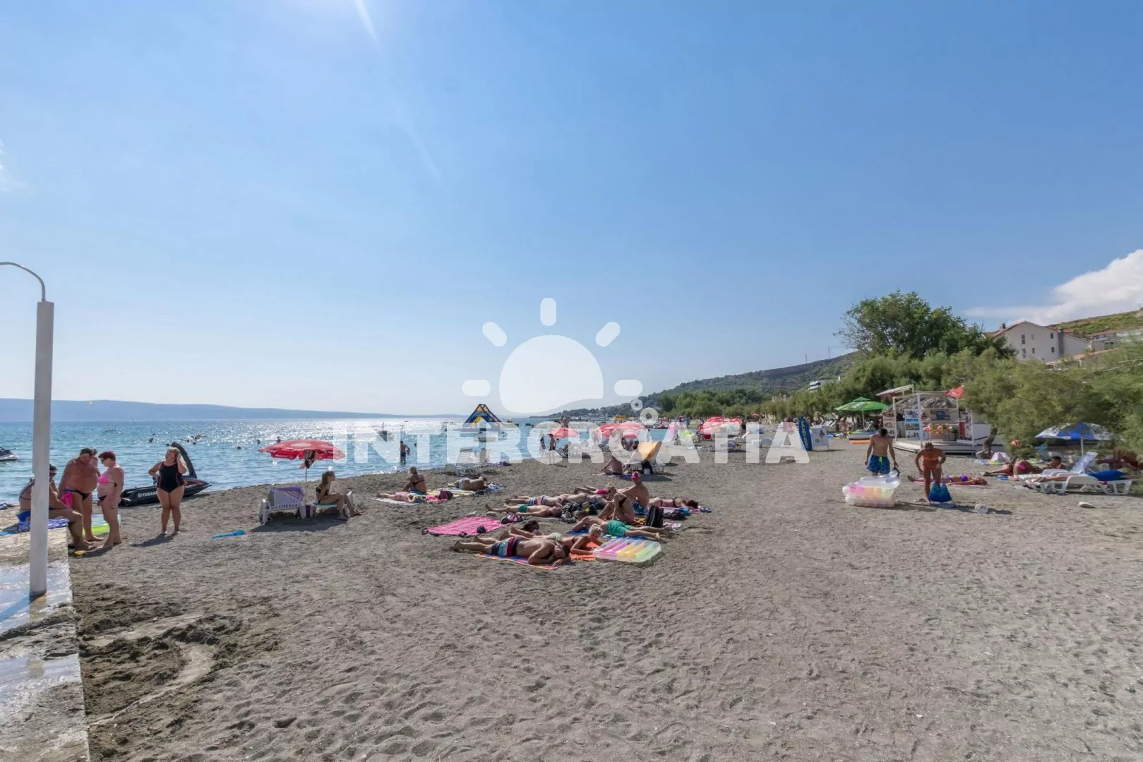 Vzdálenosti: Moře 120 m, pláž (písek, v blízkosti přístupová cesta) 180 m, obchod 600 m, centrum 1300 m, pošta 1500 m, lékárna 200 m, zdravotní středisko 2500 m, restaurace 600 m, směnárna 600 m, banka 1000 m, muzeum 1500 m, bar 180 m, půjčovna kol 1500 m, půjčovna motorových člunů 1500 m, kotviště pro čluny 1500 km, potápěčský klub 1500 m, tenisové kurty 600 m, čerpací stanice 700 m, veřejná doprava 200 m, diskotéka 20 km, přístav 1500 m, trajekt 25 km (Split), letiště 45 km (Split).