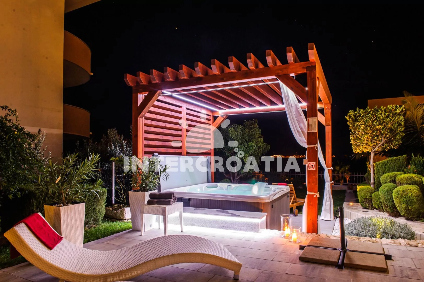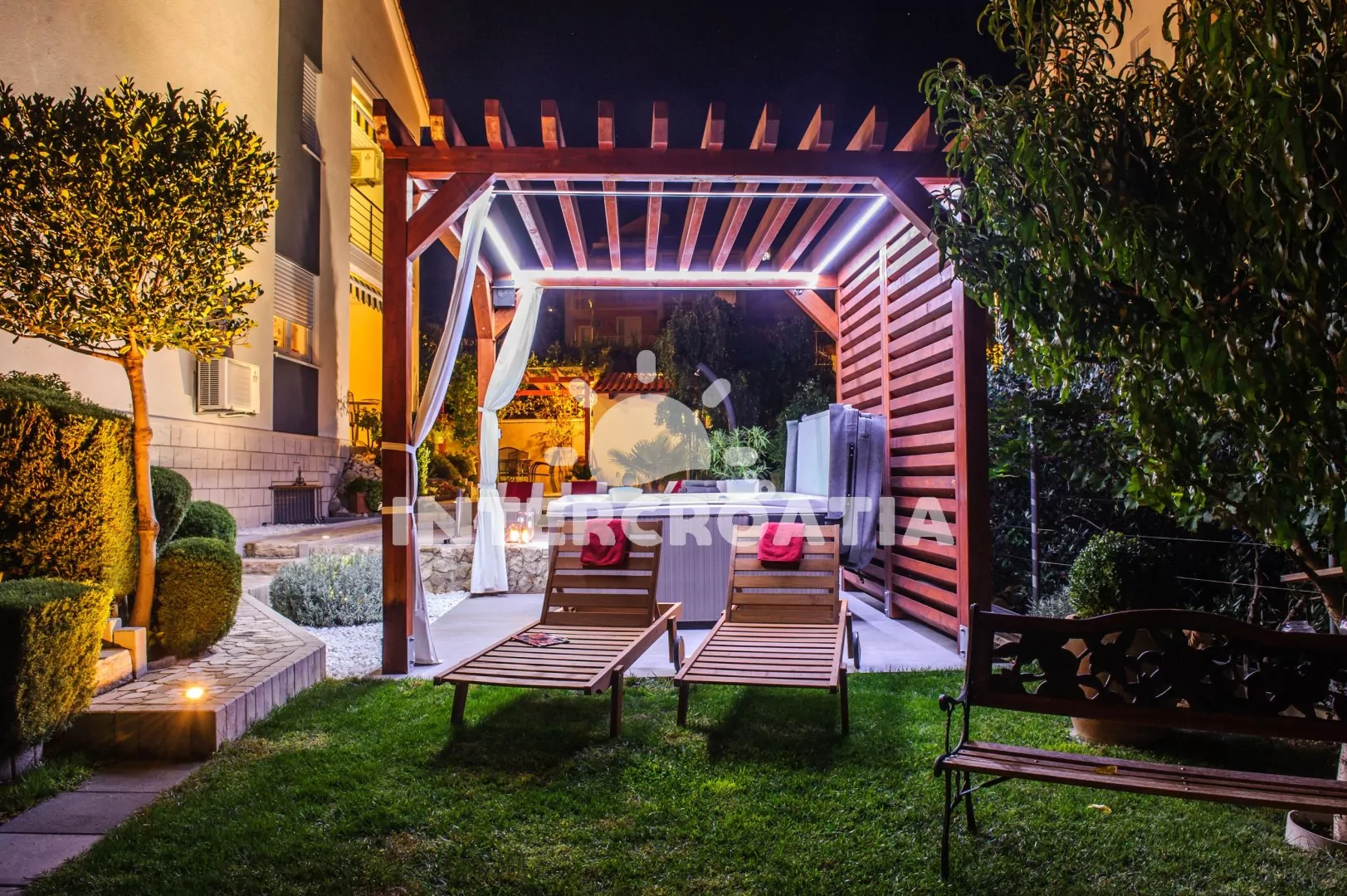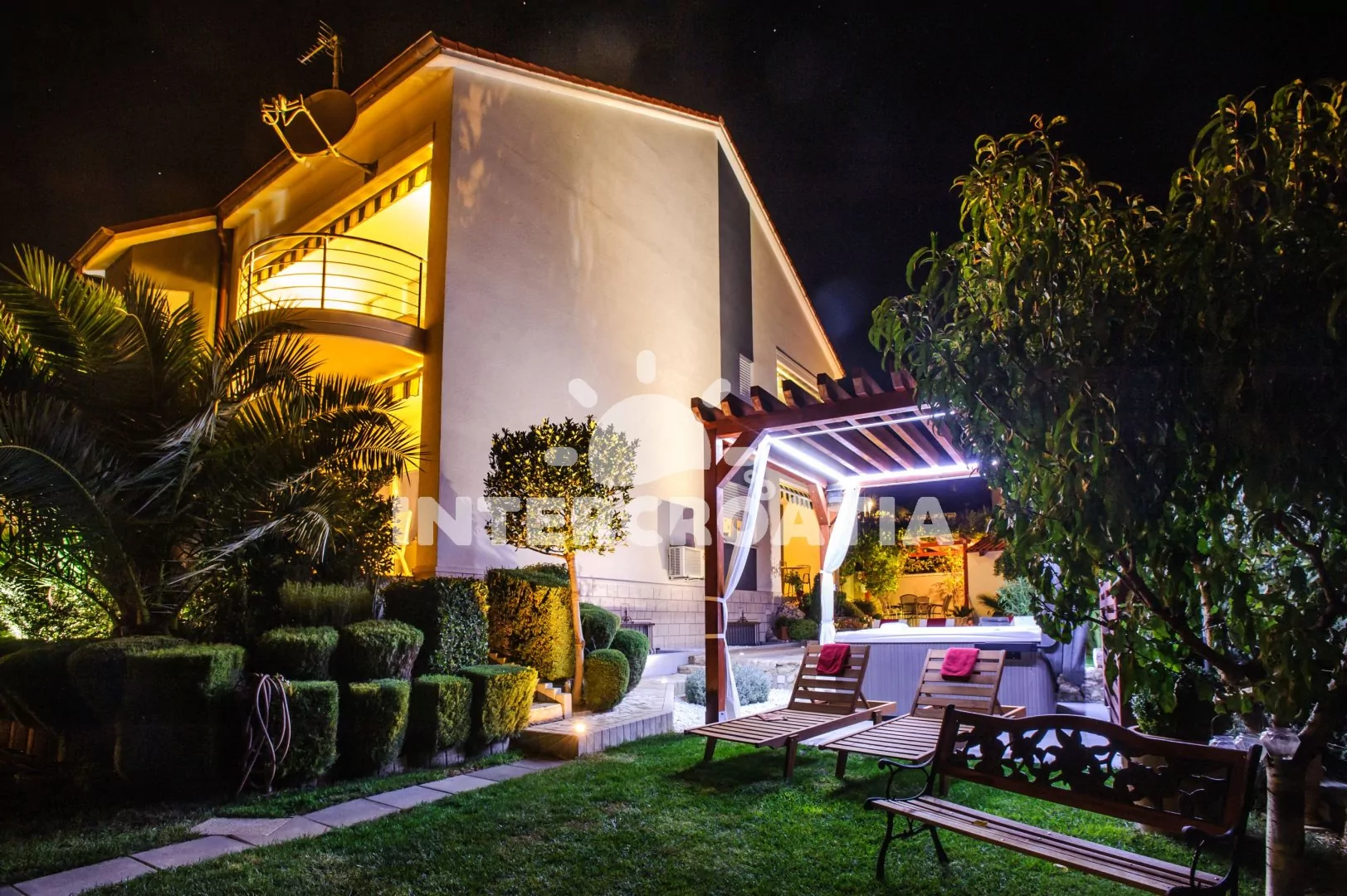 Apartmánová vila umístěná v klidné lokalitě s výhledem na moře a 350 m pěší chůzí od pláže. Kolem vily okrasná zahrada se společnou terasou, pergolou a vířivkou. K dispozici zimní zahrada s posezením a parkovací místa u objektu.