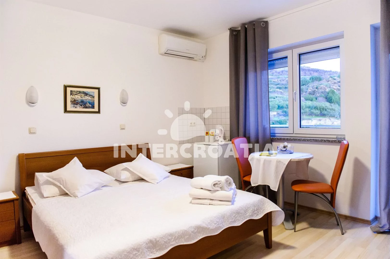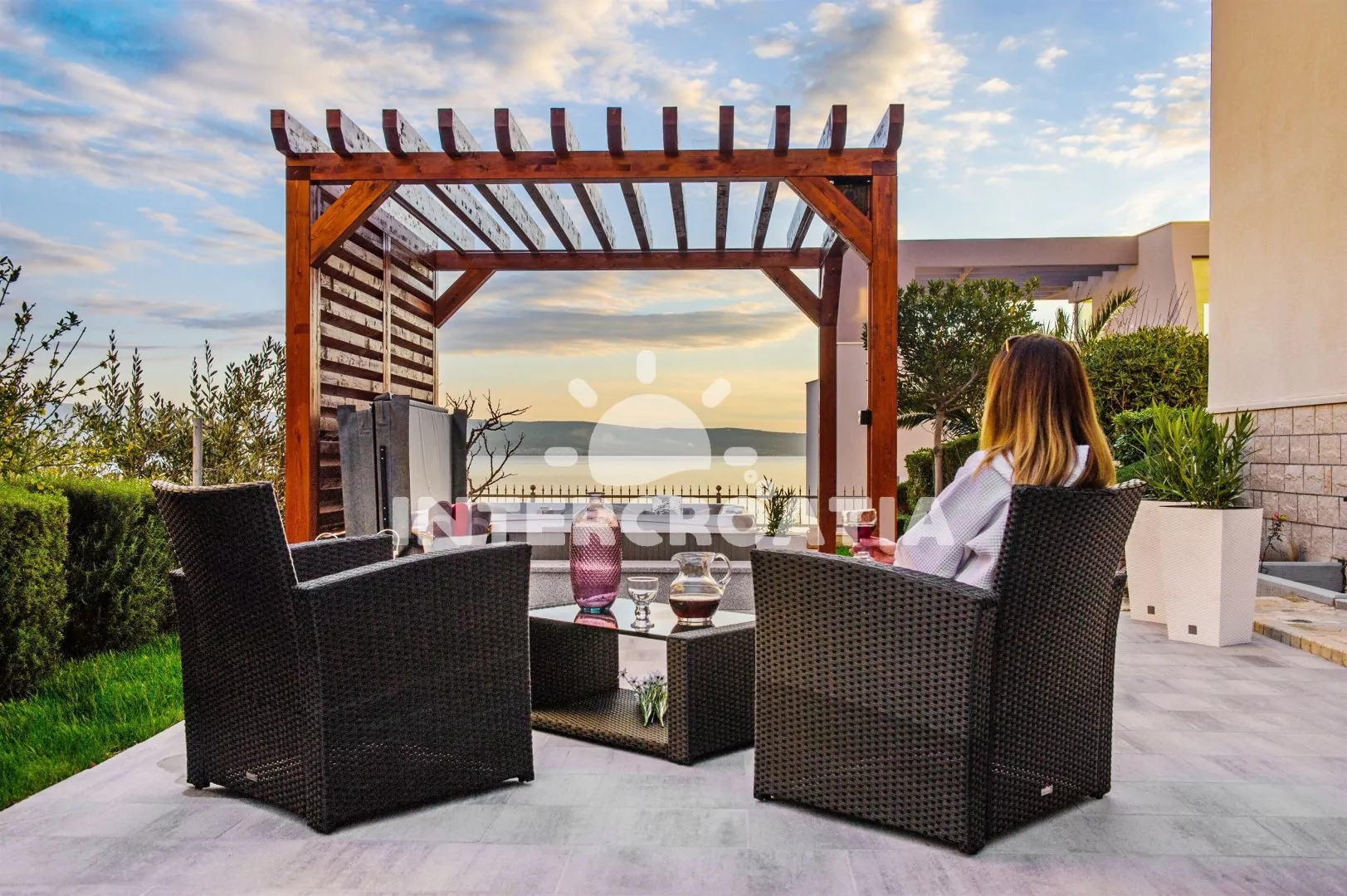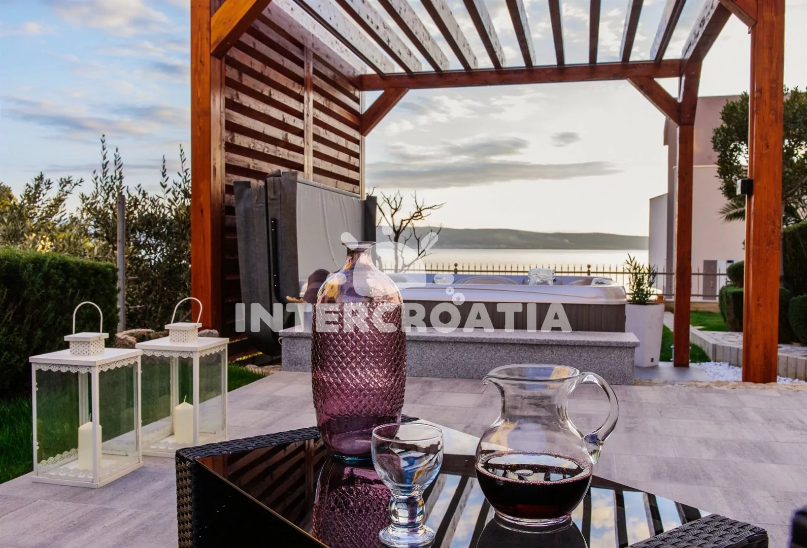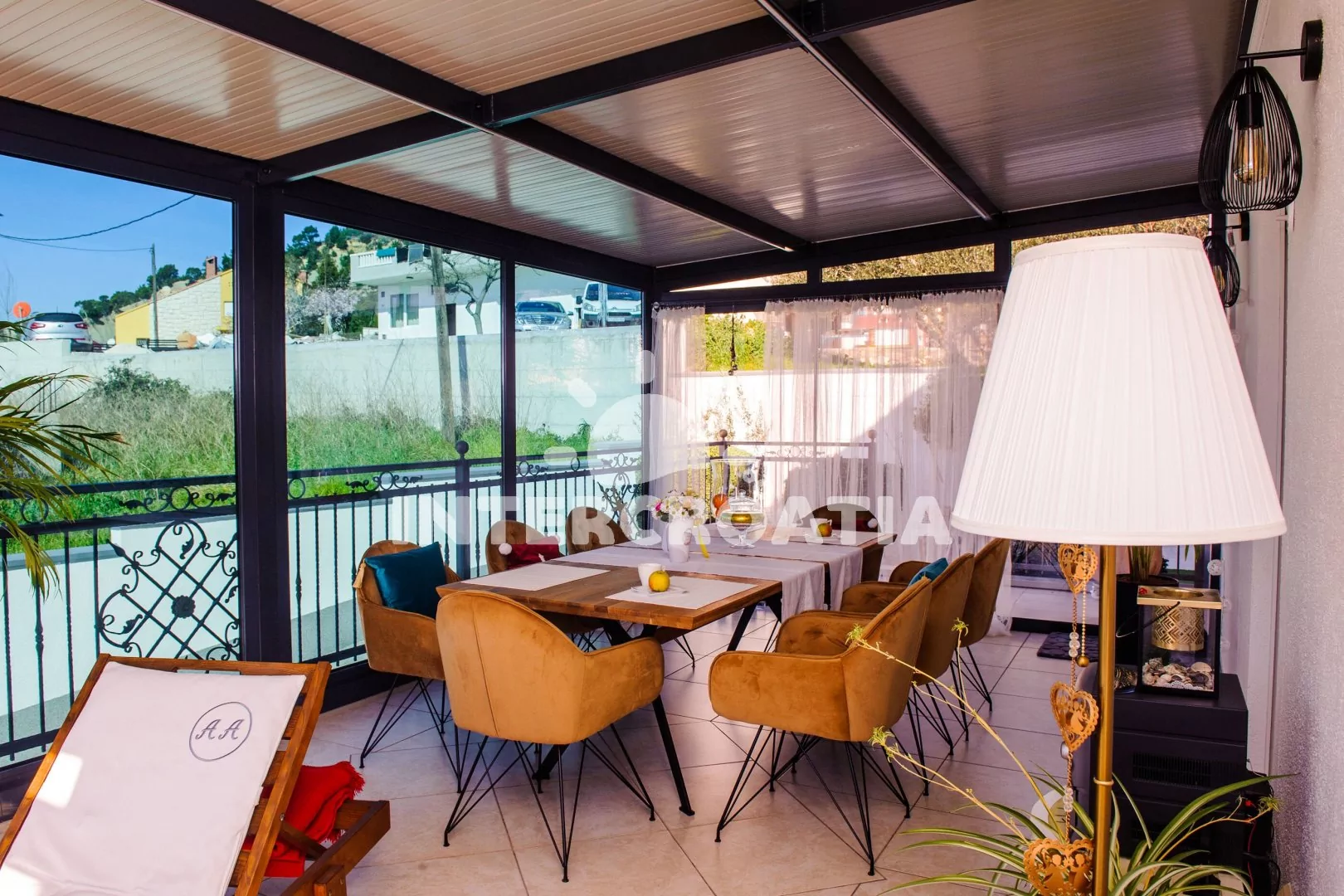 Apartmánová vila umístěná v klidné lokalitě s výhledem na moře a 350 m pěší chůzí od pláže. Kolem vily okrasná zahrada se společnou terasou, pergolou a vířivkou. K dispozici zimní zahrada s posezením a parkovací místa u objektu.