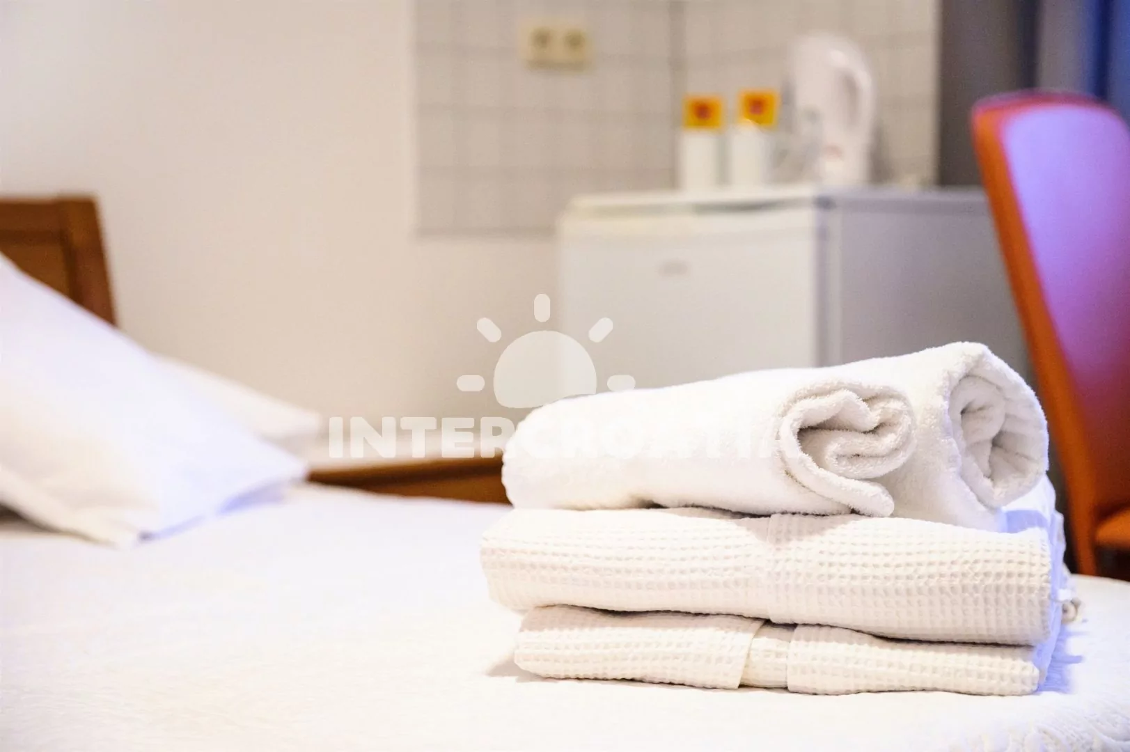 Vzdálenosti: Moře a oblázková pláž 350 m, supermarket, veřejná doprava, restaurace, bar 200 m, lékárna, ambulance 1 km, pošta, směnárna 1,8 km, centrum 2 km, přístav, potápění, venkovní a vnitřní bazén, tenis, diskotéka 4 km, čerpací stanice 6 km, banka 6,5 km, trajekt, muzeum 8 km, letiště 25 km.
