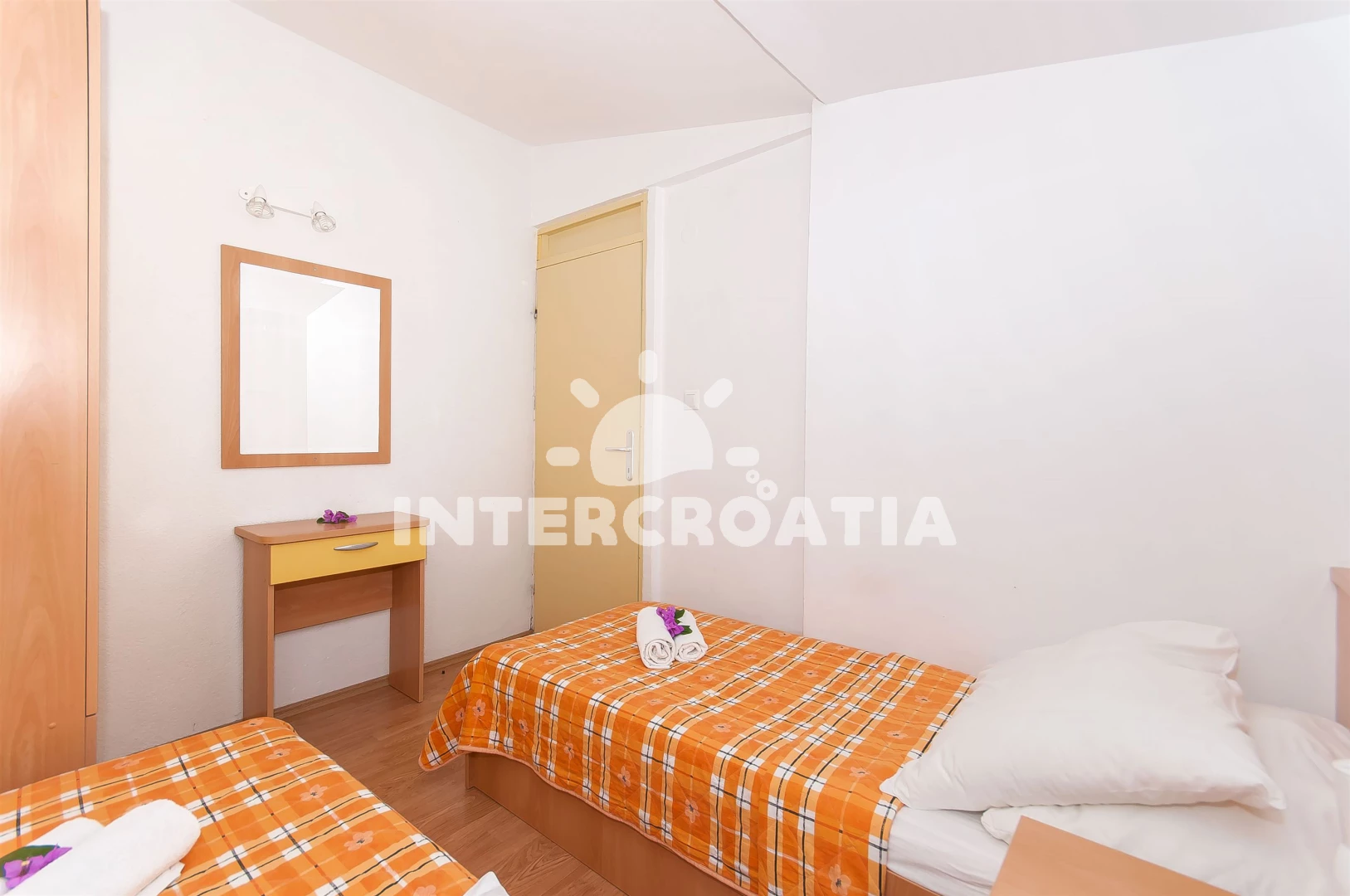 Vzdálenosti: Moře a oblázková pláž 200 m, obchod s potravinami, restaurace a bar 150 m, tenisové kurty 20 m, mini golf a pošta 50 m, centrum, půjčovna motorových člunů, ambulance a veřejná doprava 150 m, banka, lékárna a směnárna 16 km, muzeum 25 km, trajekt (Ploče) 29 km, letiště (Dubrovník) 87 km.