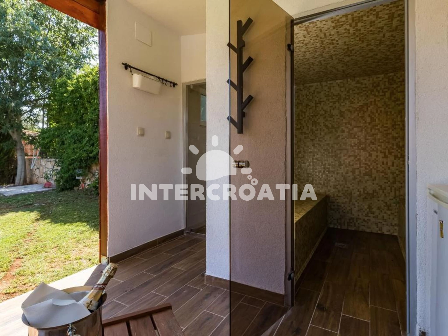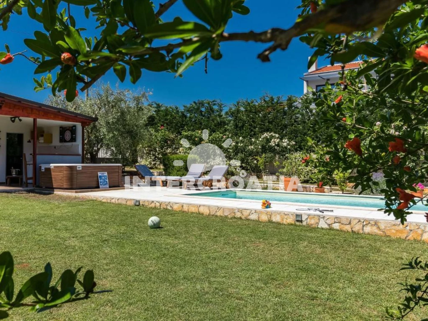 Domek se nachází 3500 m od moře a pláže. Pláž je skalnatá, oblázková a betonové desky. K dispozici vířivka, sauna. U objektu je k dispozici společná zahrada s posezením a grilem.