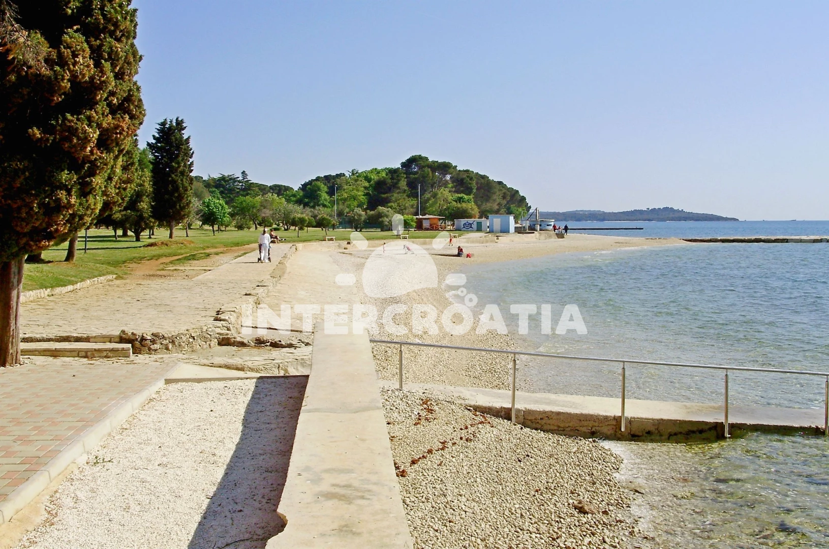 Vzdálenosti: Moře 400 m, pláž 500 m (skalnatá, oblázková a betonové desky), veřejná doprava 20 m, supermarket 30 m, směnárna 50 m, restaurace 100 m, bar 100 m, pošta 100 m, banka 100 m, centrum 200 m, ambulance 200 m, lékárna 200 m, čerpací stanice 300 m, muzeum 300 m, půjčovna kol 300 m, mini golf 1 km, půjčovna motorových člunů 1 km, tenisové kurty 2 km, potápění 3 km, trajekt (Pula) 7 km, diskotéka 7 km, letiště (Pula) 13 km,