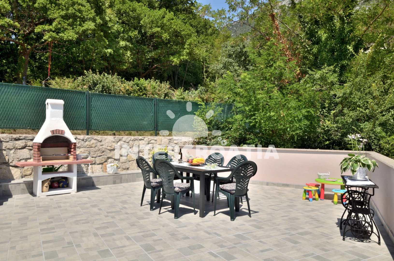 Velké terasy s pěknými židlemi a slunečníkem/BBQ
