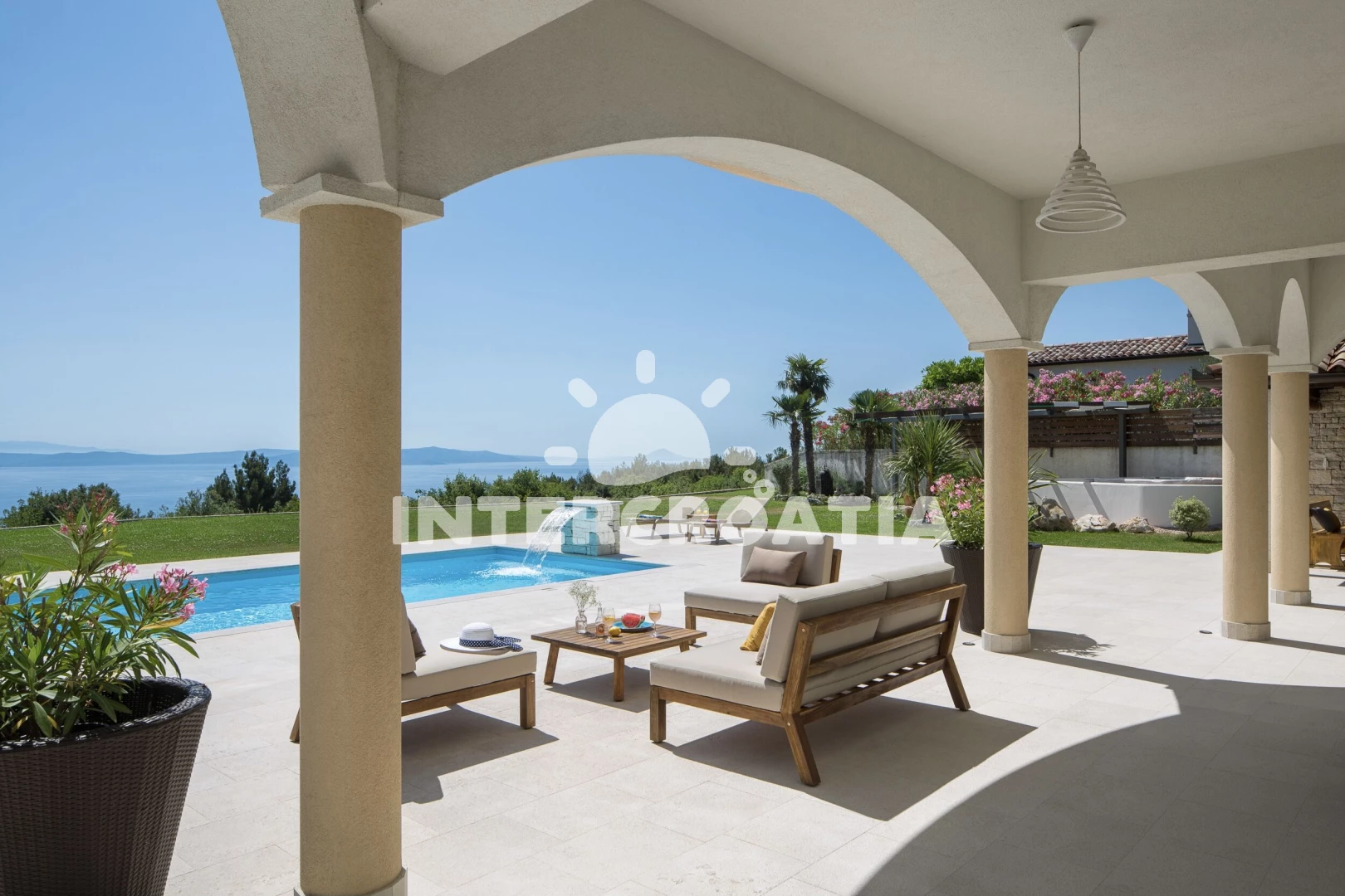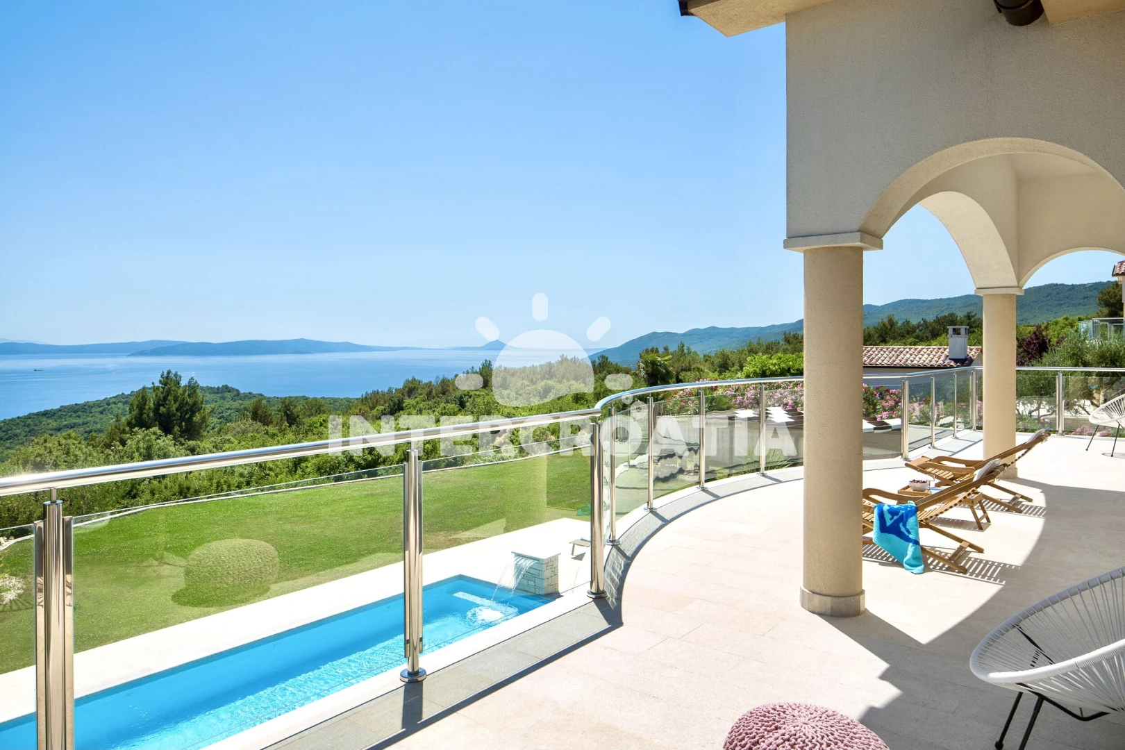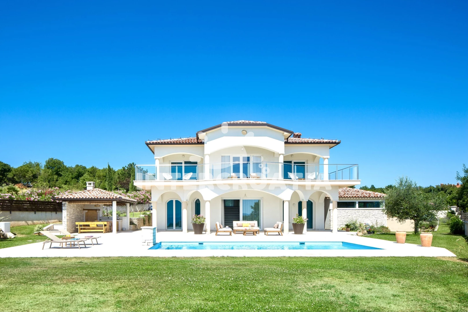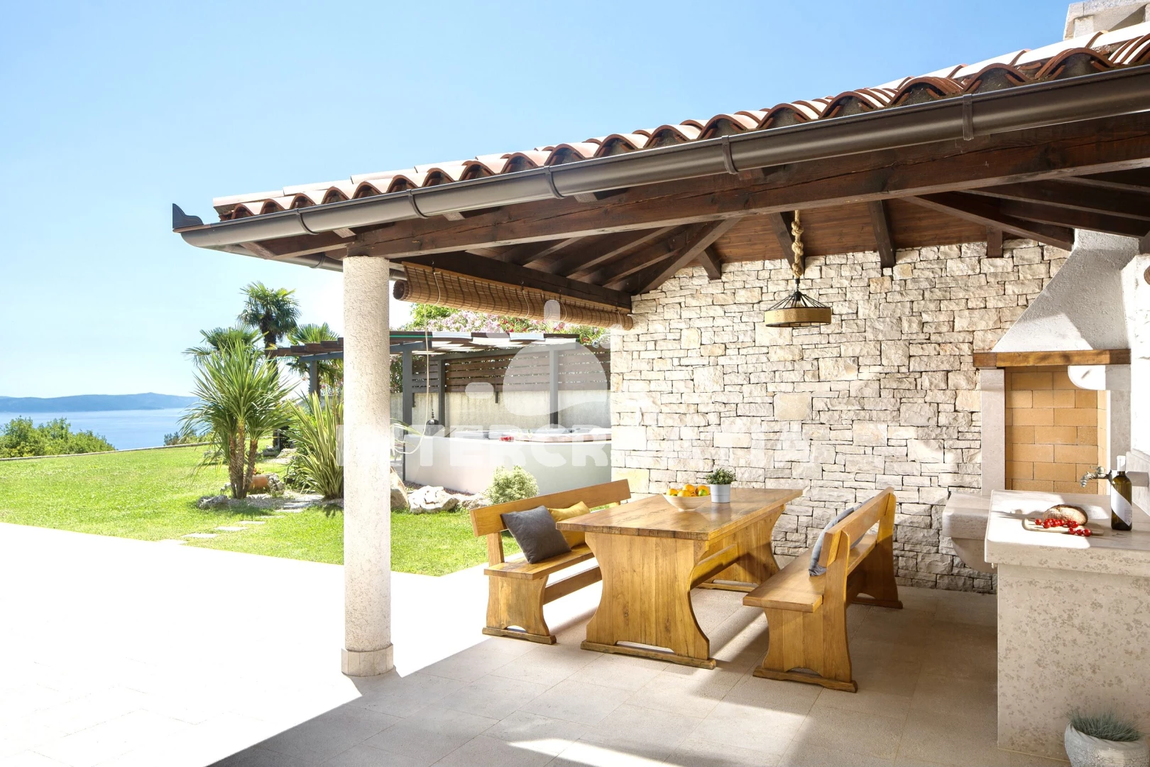 Domek se nachází 1000 m od moře a pláže. Pláž je skalnatá a oblázková. Domek disponuje bazénem s lehátky pro ubytované hosty. K dispozici vířivka. U objektu je k dispozici společná zahrada s posezením a grilem. Parkování je před domem.