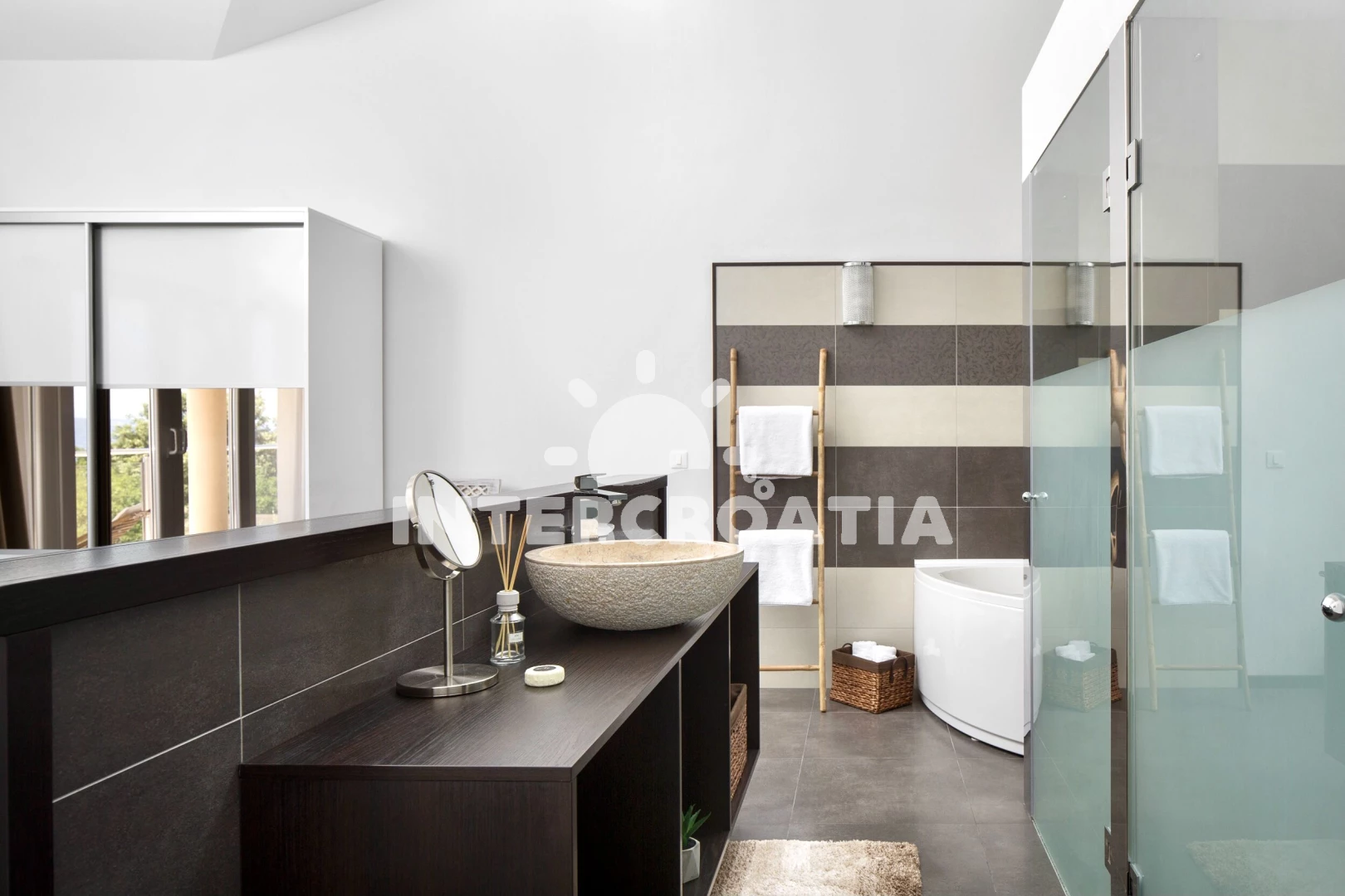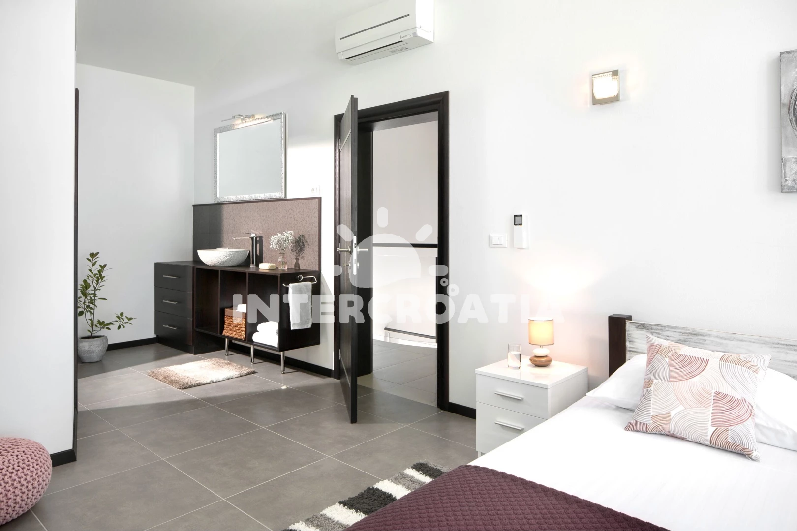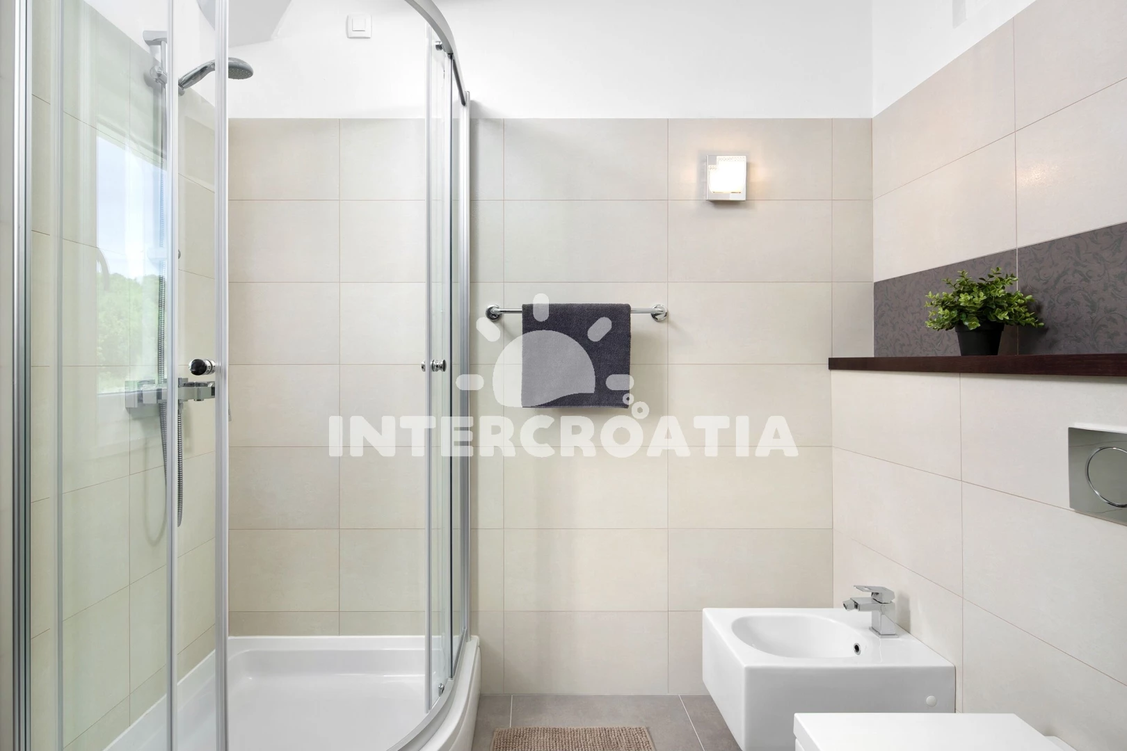 Vzdálenosti: Moře 900 m, pláž 1 km (skalnatá a oblázková), veřejná doprava 500 m, pošta 1 km, supermarket 1 km, centrum 1 km, bar 1 km, restaurace 1 km, banka 4 km, lékárna 5 km, čerpací stanice 5 km, směnárna 5 km, ambulance 5 km, půjčovna kol 7 km, půjčovna motorových člunů 7,7 km, trajekt (Brestova) 25,5 km, letiště (Pula) 41,5 km, park Plitvice 43,9 km,