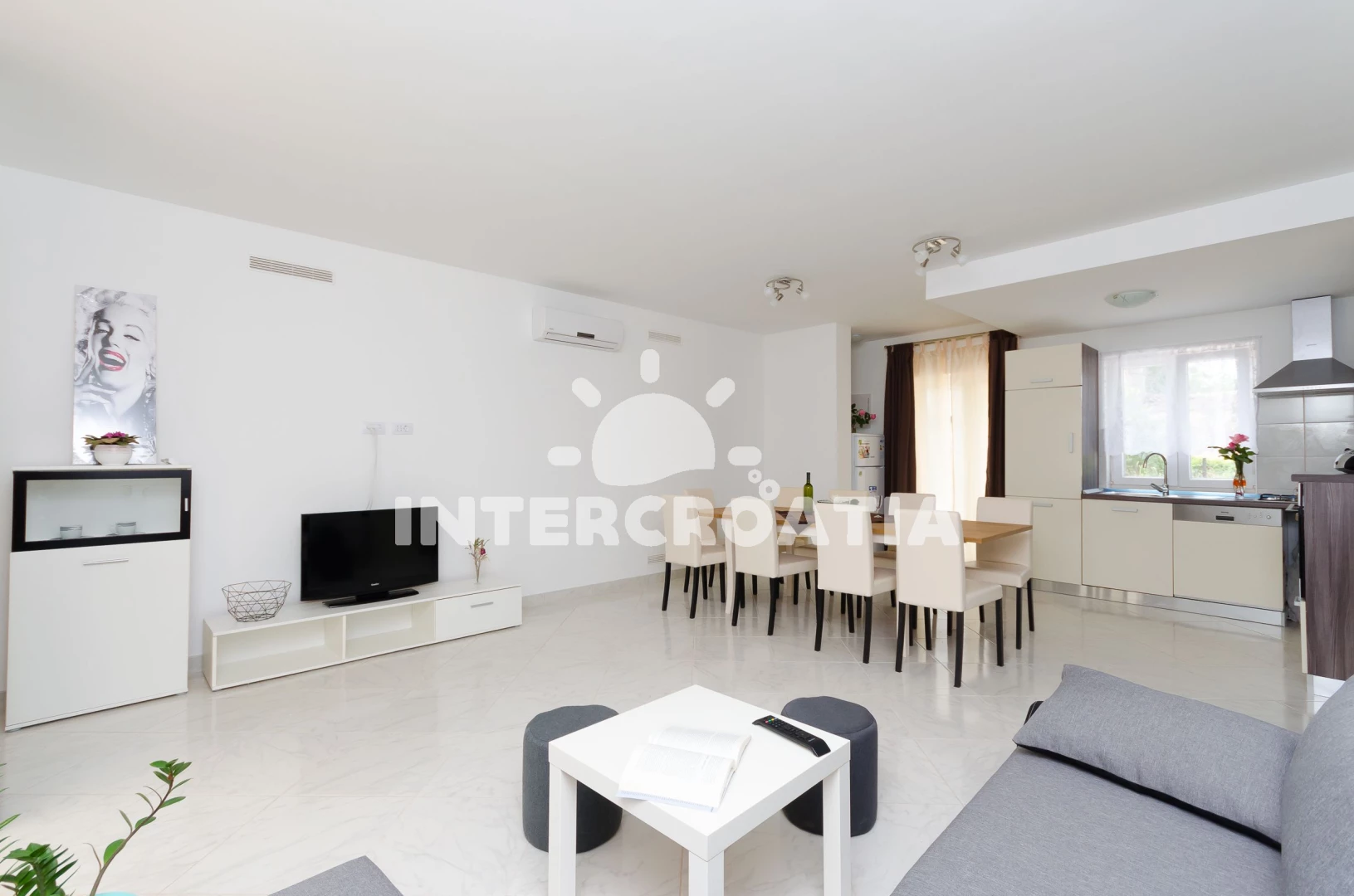 Domácí zvířata jsou povolena ( 6 € na den ). V ceně pobytu zahrnuto: WiFi, klimatizace (všechny pokoje), topení, povlečení, ručníky, pračka, dětská postýlka (služba na požádání), závěrečný úklid, pobytová taxa. Host je povinen v den příjezdu do ubytování složit vratnou zálohu celkem 300 €, kterou dostane zpět v den odjezdu, pokud nepoškodil ubytovací jednotku. Pronajímatel se dorozumí chorvatsky, anglicky, německy, italsky. Pronajímatel vás bude očekávat po 16:00. V den odjezdu je nutné vyklidit apartmán do 10:00.