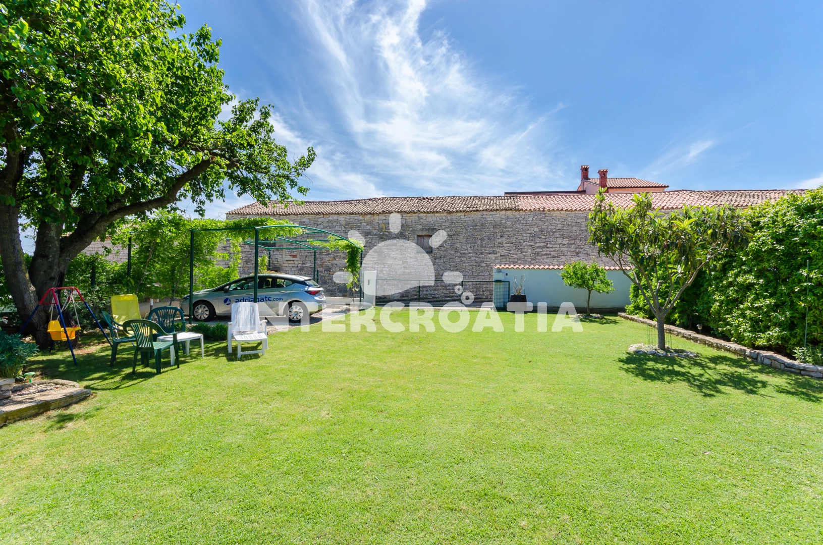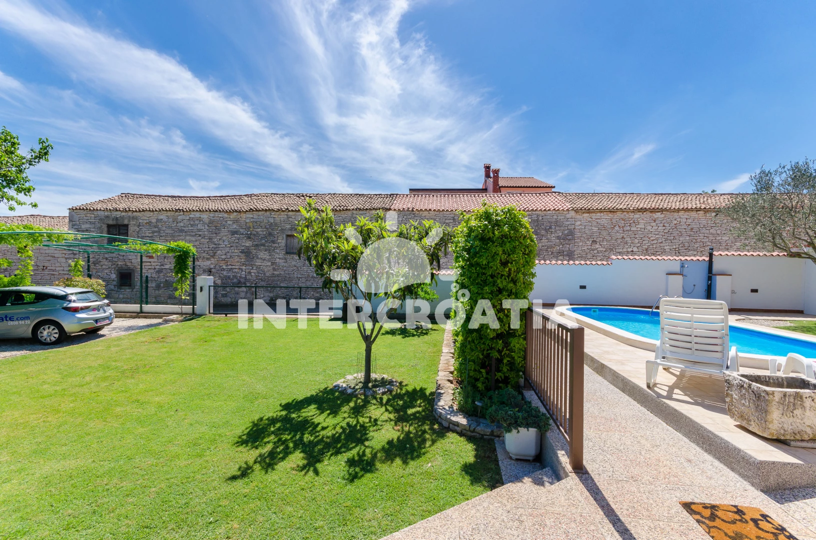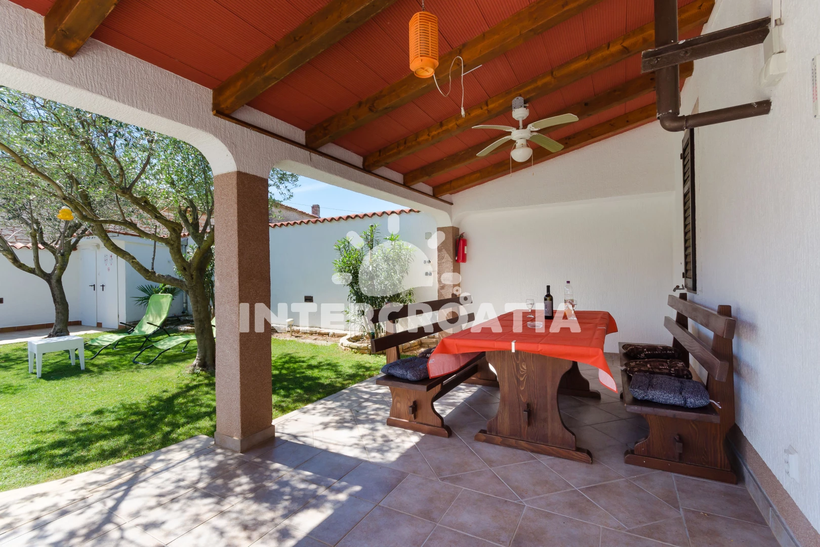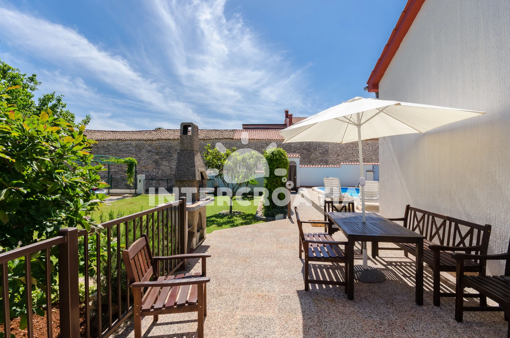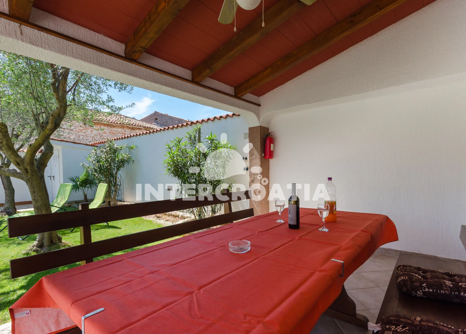 Domek se nachází 2000 m od moře a pláže. Pláž je skalnatá a oblázková. Domek disponuje bazénem s lehátky pro ubytované hosty. U objektu je k dispozici společná zahrada s posezením a grilem. Parkování je před domem.