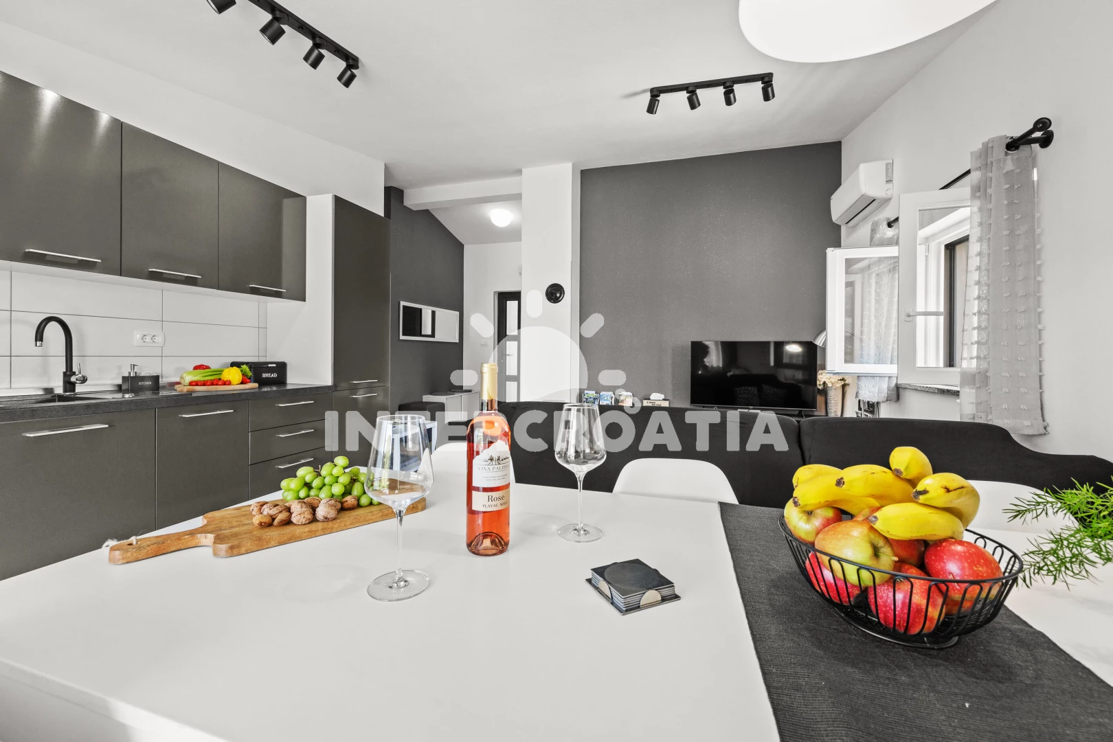 Domácí zvířata nejsou povolena. V ceně pobytu zahrnuto: WiFi, klimatizace (část místností), povlečení, ručníky, pračka, dětská postýlka (služba na požádání), závěrečný úklid, pobytová taxa. Host je povinen v den příjezdu do ubytování složit vratnou zálohu celkem 200 €, kterou dostane zpět v den odjezdu, pokud nepoškodil ubytovací jednotku. Pronajímatel se dorozumí chorvatsky, anglicky, německy, italsky. Pronajímatel vás bude očekávat po 16:00. V den odjezdu je nutné vyklidit apartmán do 10:00.