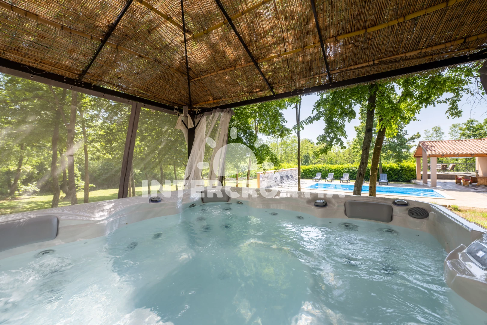 Domek se nachází 12000 m od moře a pláže. Pláž je oblázková a větší kamení. Domek disponuje bazénem s lehátky pro ubytované hosty. U objektu je k dispozici společná zahrada s posezením a grilem. Parkování je před domem.