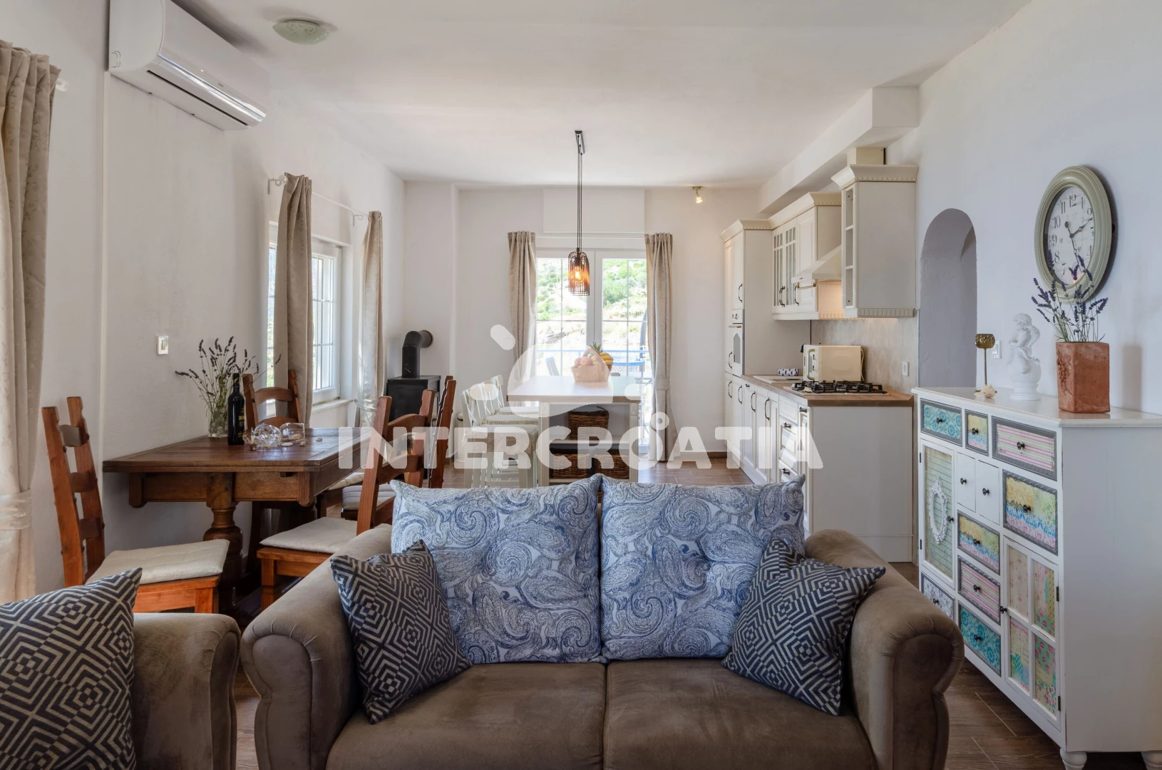 Nádherný, velmi dobře zařízený dům. Vše čisté a funkční. Velmi klidná lokalita, jelikož sousedé jsou vzdáleni cca 50m. Dvě skvěle využitelné terasy a další "sluneční paluba". Popíjet víno na zadní terase večer a užívat si nesrovnatelný výhled na záliv a ostrovy je čistá relaxace! Zařízení a vybavení domu nesplní přání, nábytek je stylový a nový. Koupelna je pěkně zařízená a má velký tlak vody. Na nákupy (asi 3 km) a na pláž (asi 1 km) musíte dojet autem, ale to není problém. Poloha je ideální jako výchozí bod pro výlety do okolí a na sousední ostrovy. Paní domácí okamžitě vyřídila všechny požadavky a návrhy, kontakt byl velmi přátelský a příjemný, dokonce přinesla dvě čerstvé ryby na gril. Sen pro dva lidi, více lidí si bude muset vystačit s jednou koupelnou/WC, ale to by neměl být problém. Rozhodně doporučuji.
