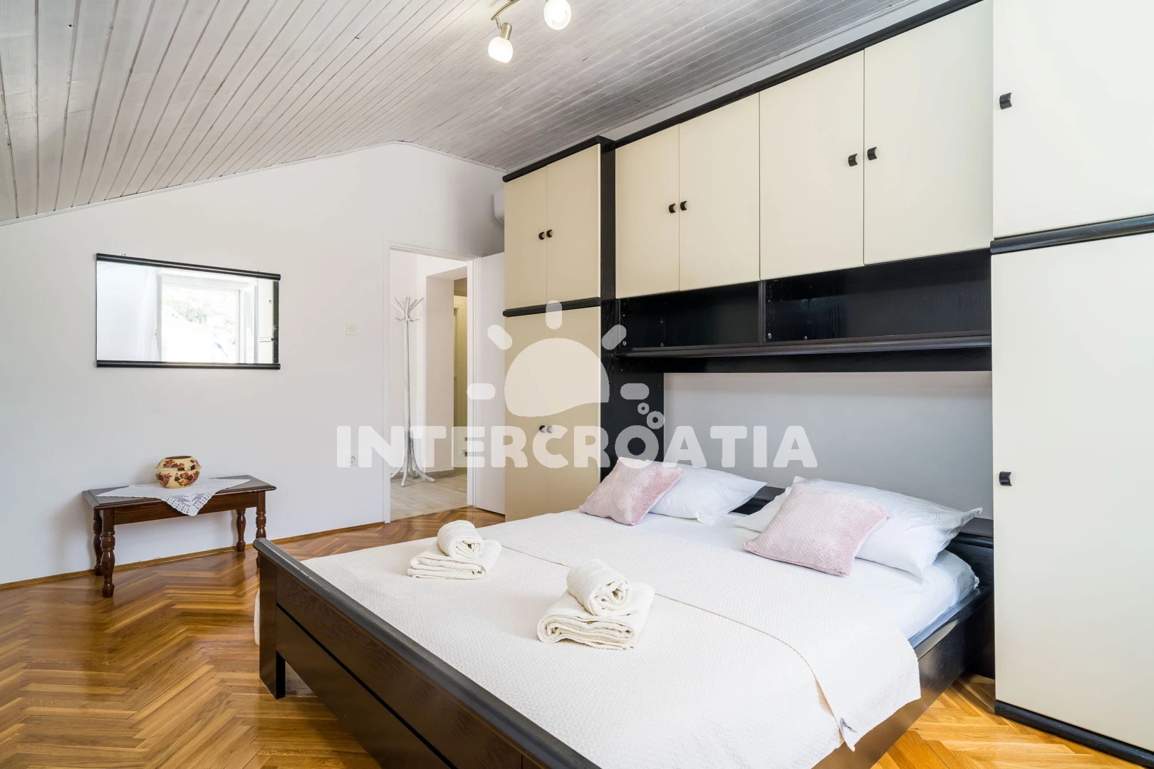 Domek (110 m2) s výhledem na moře. Nachází se v podkroví objektu. Domek má 3 ložnice a je vhodný pro až 6 osob. Kuchyňská linka je vybavena varnou deskou, troubou, myčkou na nádobí, mikrovlnnou troubou, rychlovarnou konvicí, nádobím, lednicí, mrazákem. K dispozici televize, žehlička. První ložnice s dvoulůžkem. Druhá ložnice s dvoulůžkem. Třetí ložnice s jednolůžky, dvoulůžkem. První koupelna se sprchovým koutem, umyvadlem, fénem a WC. Druhá koupelna se sprchovým koutem, umyvadlem, fénem a WC.