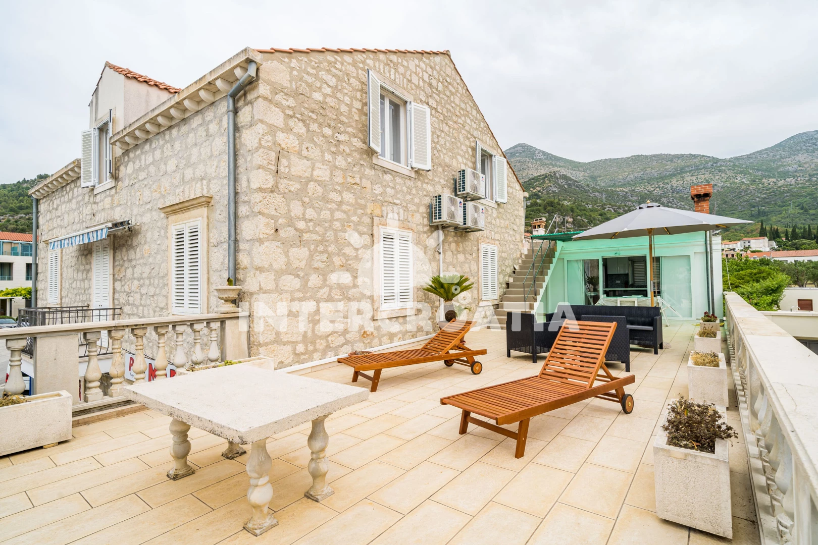 Vzdálenosti: centrum 0 m, Moře 30 m, pláž 400 m (oblázky), supermarket 5 m, lékárna 10 m, restaurace 30 m, bar 30 m, ambulance 100 m, tenisové kurty 300 m, pošta 300 m, veřejná doprava 300 m, směnárna 300 m, marina 400 m, trajekt (Dubrovnik) 15 km, letiště (Dubrovnik) 40 km,