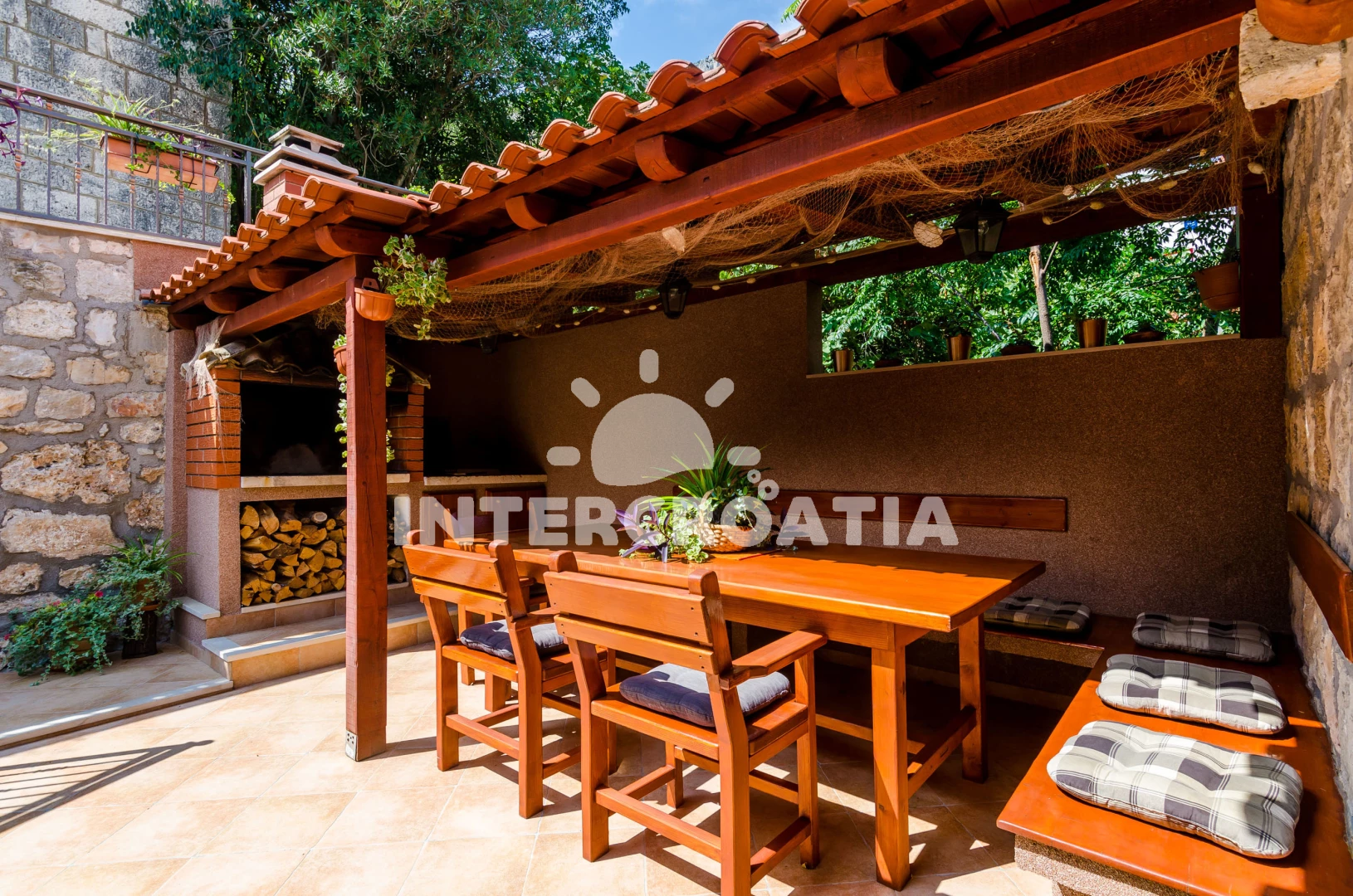 Vzdálenosti: Moře 50 m, pláž 50 m (oblázky), směnárna 20 m, pošta 20 m, půjčovna kol 50 m, restaurace 50 m, bar 50 m, centrum 50 m, veřejná doprava 50 m, supermarket 50 m, půjčovna motorových člunů 50 m, čerpací stanice 5 km, ambulance 10 km, banka 30 km, lékárna 30 km, trajekt (Prapatno) 30 km, letiště (Dubrovnik) 100 km,