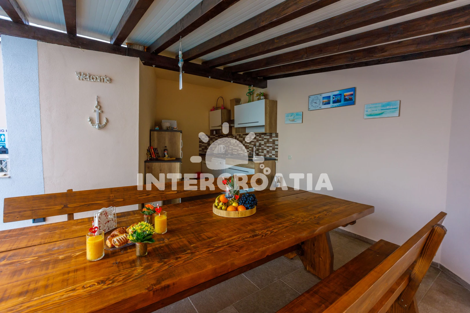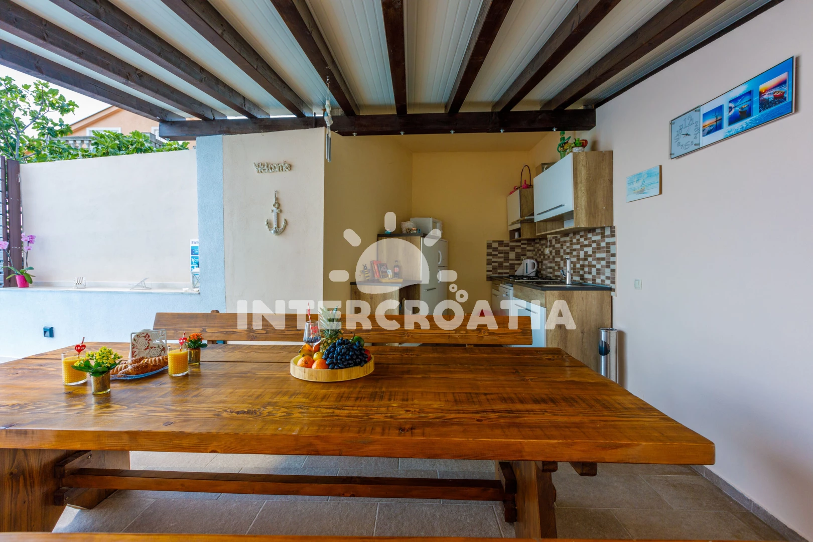 Domek se nachází 1500 m od moře a pláže. Pláž je oblázková a betonové desky. Domek disponuje bazénem s lehátky pro ubytované hosty. K dispozici posilovna. U objektu je k dispozici společná zahrada s posezením a grilem. Parkování je před domem.