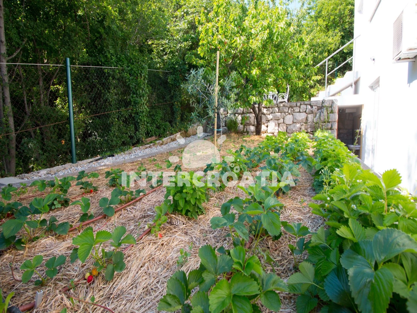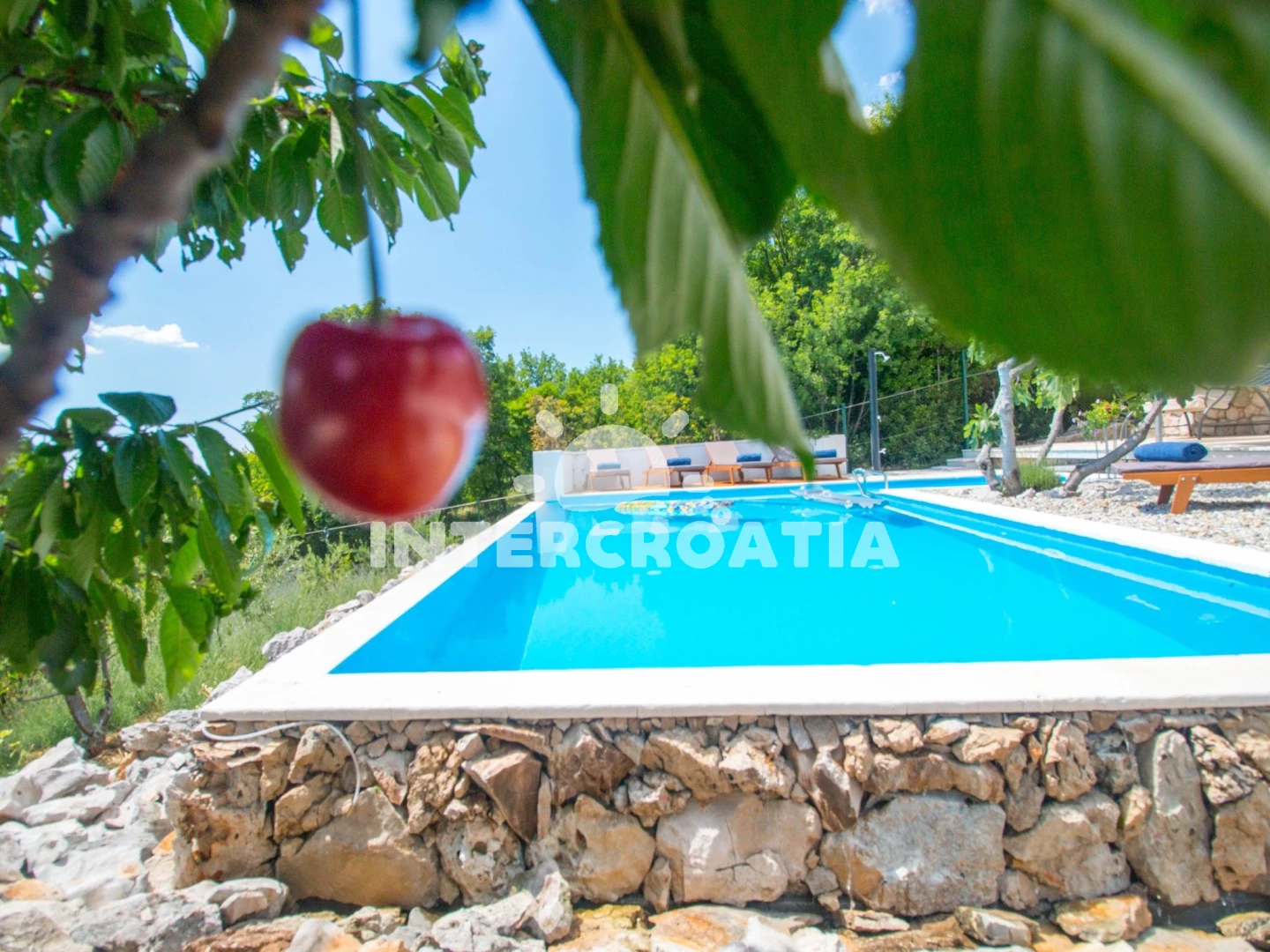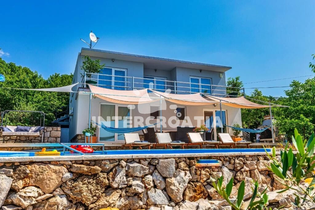 Domek se nachází 2000 m od moře a pláže. Pláž je oblázková a větší kamení. Domek disponuje bazénem s lehátky pro ubytované hosty. U objektu je k dispozici společná zahrada s posezením a grilem. Parkování je .