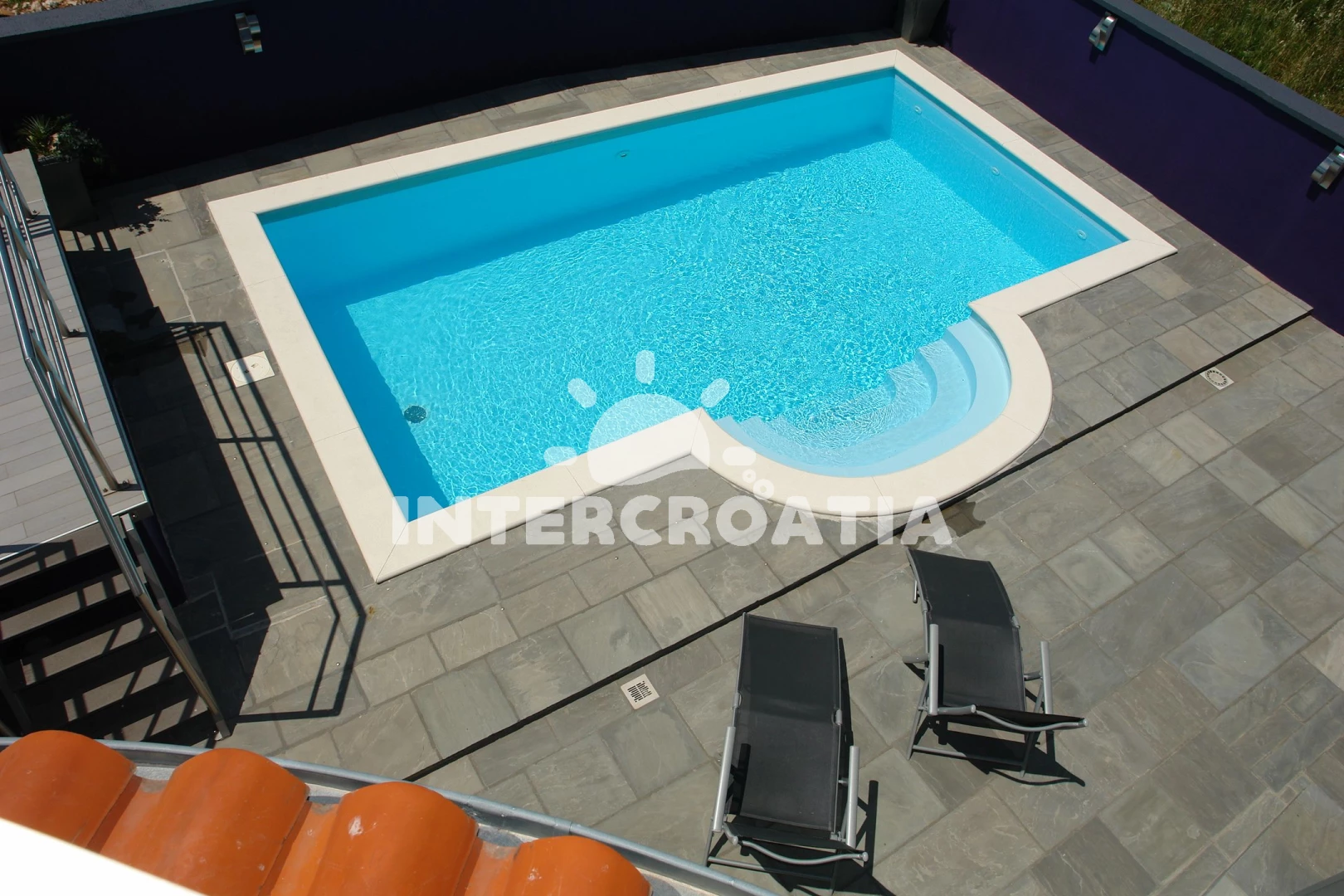 Domek se nachází 1050 m od moře a pláže. Pláž je oblázková a větší kamení. Domek disponuje bazénem s lehátky pro ubytované hosty. K dispozici vířivka, posilovna. U objektu je k dispozici společná zahrada s posezením a grilem. Parkování je před domem.