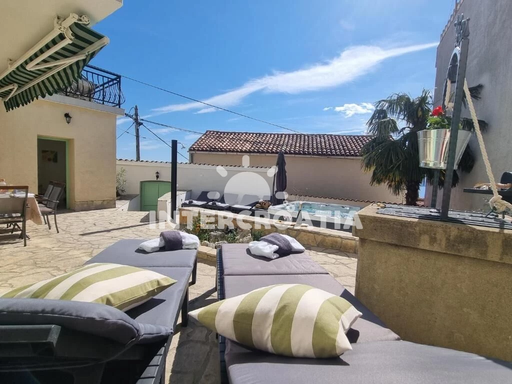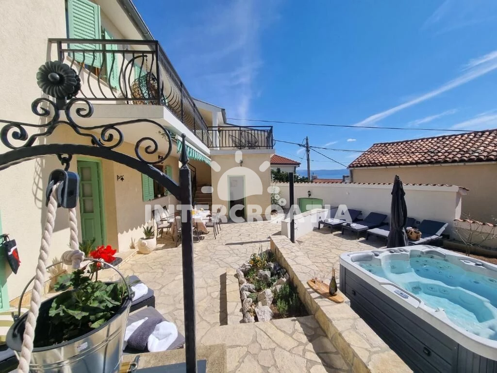 Domek se nachází 800 m od moře a pláže. Pláž je skalnatá, oblázková, větší kamení a betonové desky. K dispozici vířivka. U objektu je k dispozici společná zahrada s posezením a grilem.